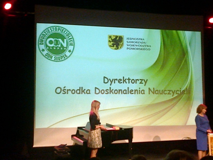 14.11.2014 roku w Ośrodku Teatralnym Rondo w Słupsku odbyła się uroczystość 25-lecia Ośrodka Doskonalenia Nauczycieli w Słupsku. Po powitaniu gości przez Panią Dyrektor Bożenę Żuk zaprezentowano prezentację "25 lat ODN", na której odnaleźliśmy także nasze warsztaty lalek-motanek i naszych nauczycieli.W uroczystości uczestniczyły dwie panie: wicedyrektor L. Wasielewska oraz p. M. Hanasko nauczycielka j. polskiego i j, ukraińskiego, autorka warsztatów "Lalki-motanki". Na zakończenie odbył się koncert muzyki znanej i lubianej pt." Muzyczne wędrówki po krajach Europy".