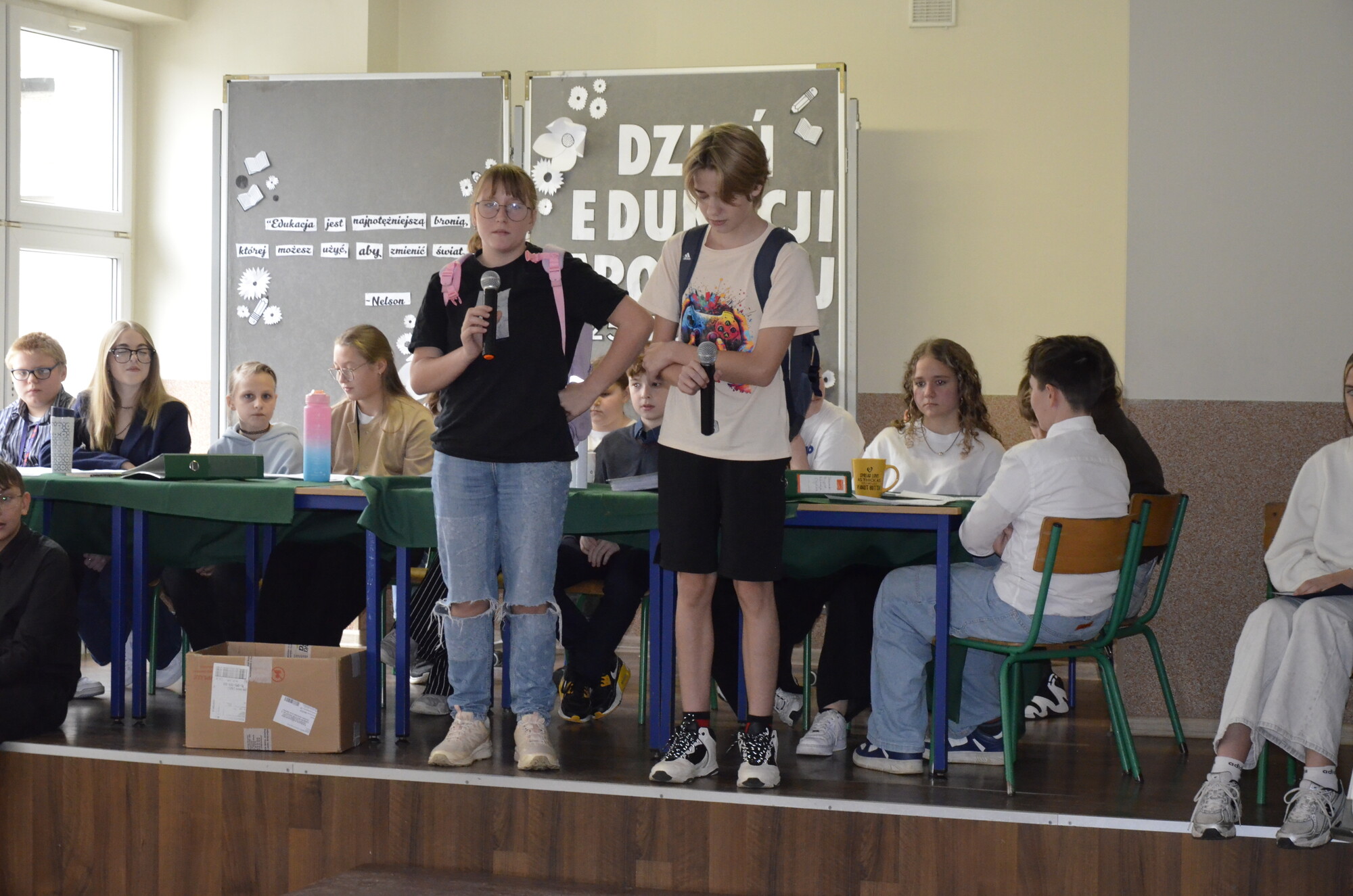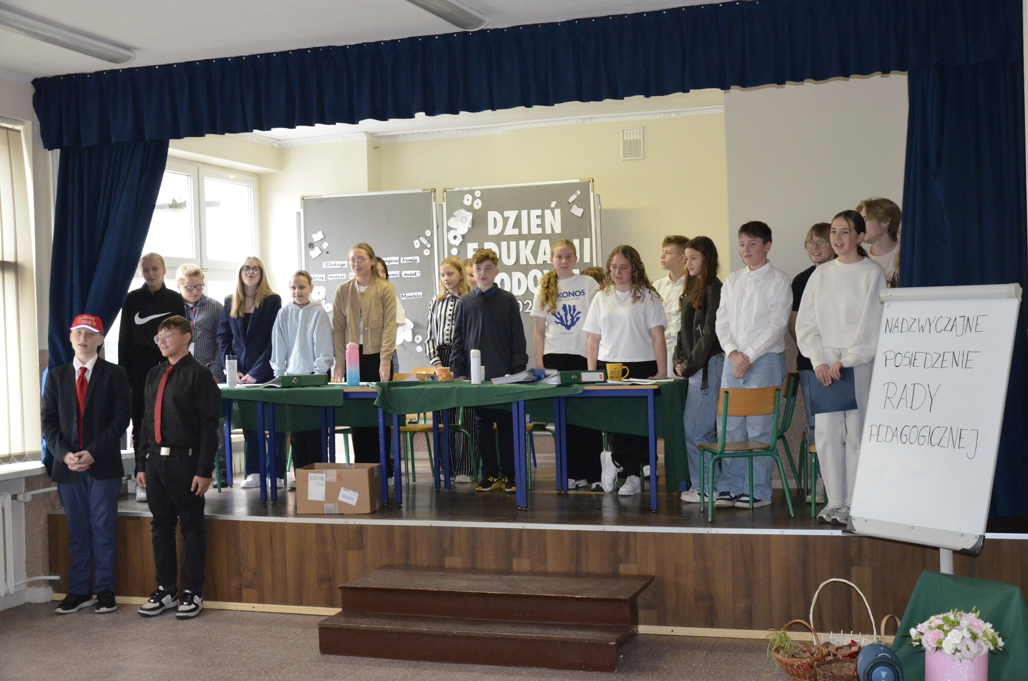 Z okazji Dnia Edukacji Narodowej uczniowie klasy 6a pod opieką pani Karoliny Malek przygotowali wyjątkową akademię. Występ pełen humoru, muzyki i serdecznych życzeń był pięknym wyrazem wdzięczności dla wszystkich nauczycieli i pracowników szkoły.