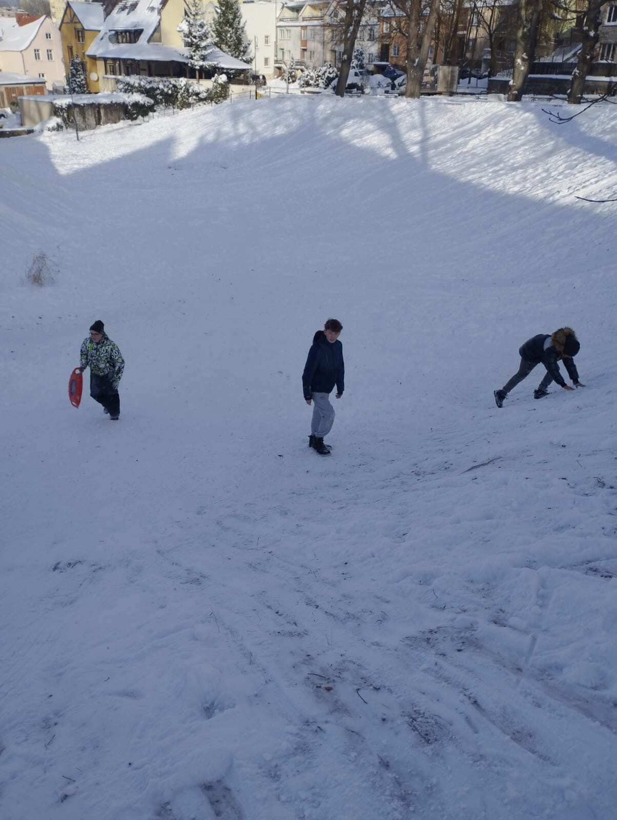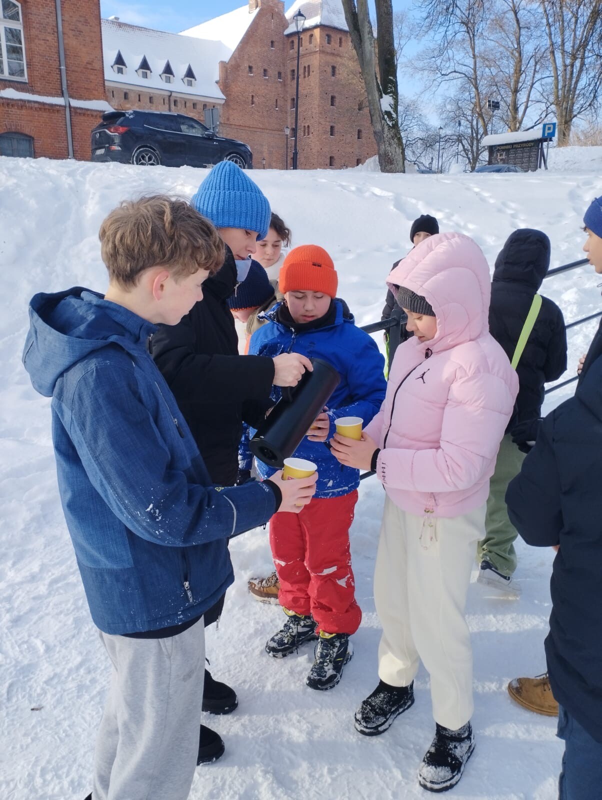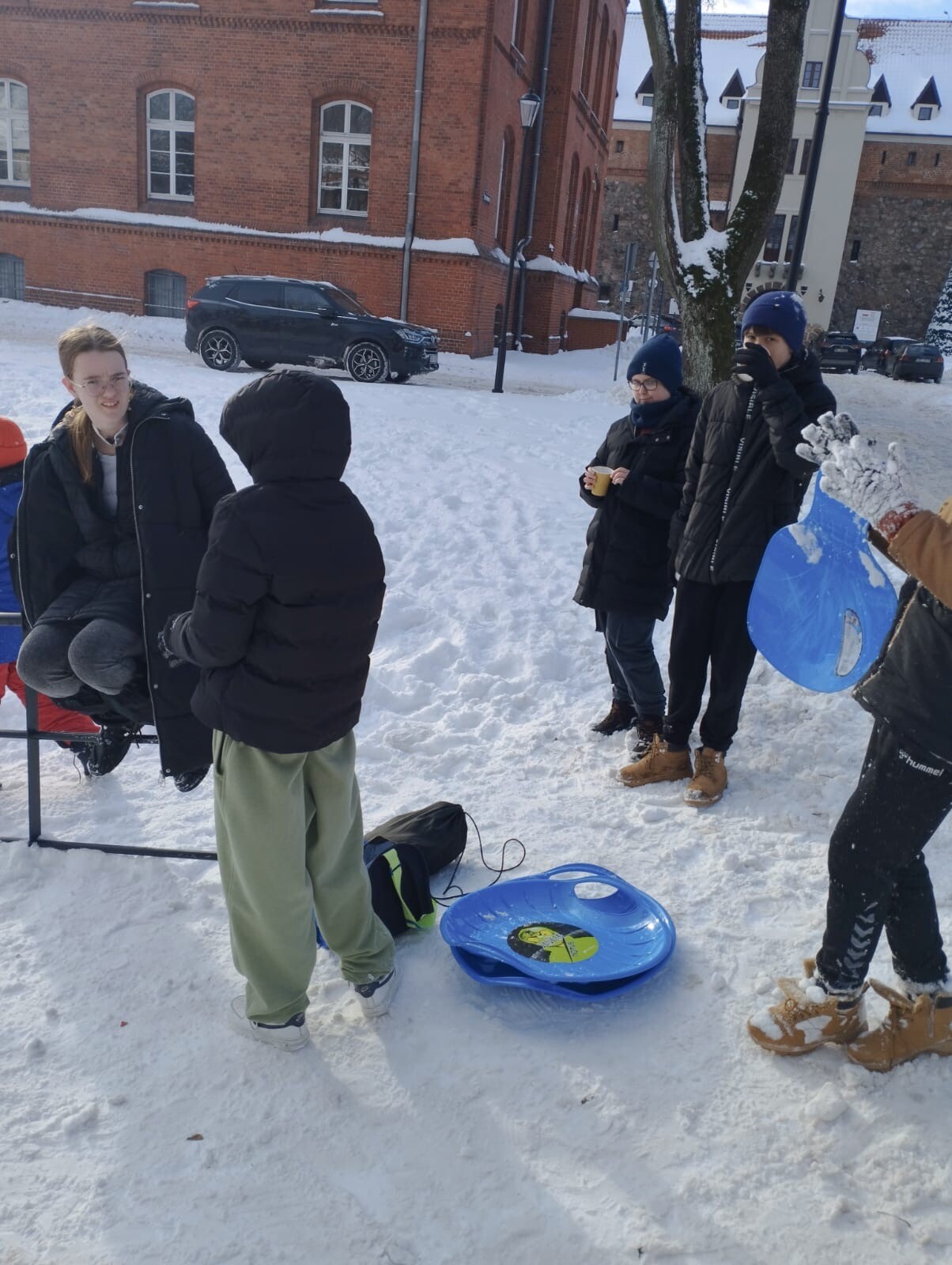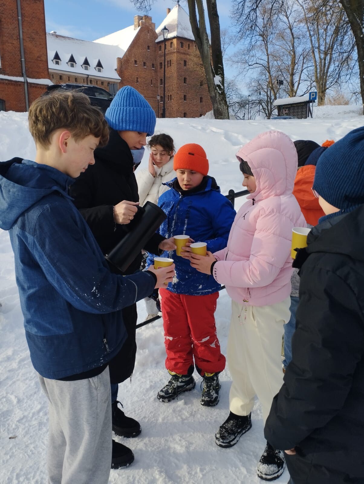 W dniu 13.01.2026 r. klasa 6b w ramach godziny wychowawczej wybrała się na zimowe „jabłuszka”. Uczniowie aktywnie spędzali czas na świeżym powietrzu – jedni zjeżdżali z górki, inni pili ciepłą herbatę i prowadzili miłe rozmowy.