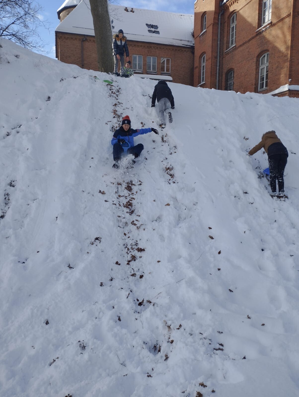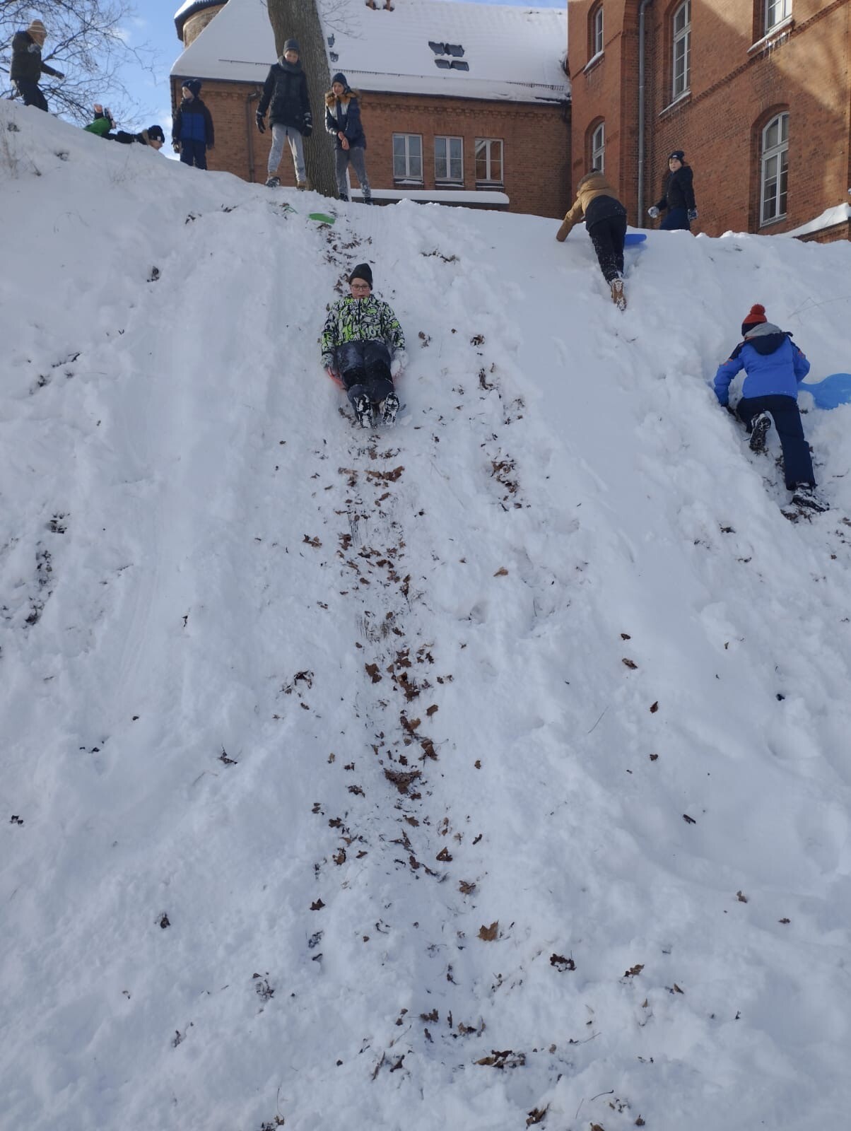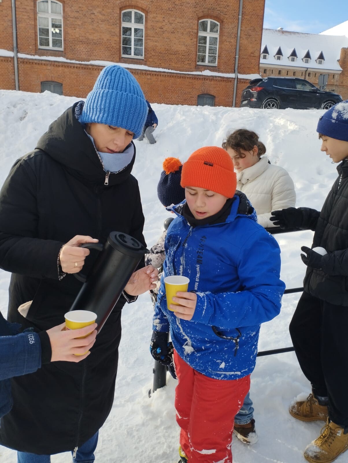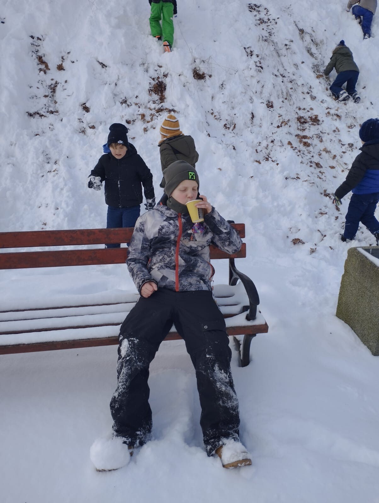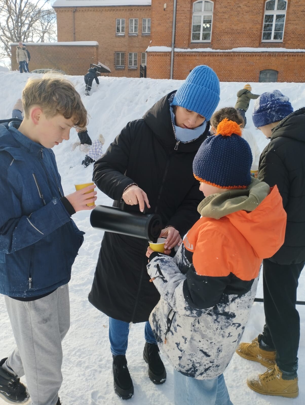 W dniu 13.01.2026 r. klasa 6b w ramach godziny wychowawczej wybrała się na zimowe „jabłuszka”. Uczniowie aktywnie spędzali czas na świeżym powietrzu – jedni zjeżdżali z górki, inni pili ciepłą herbatę i prowadzili miłe rozmowy.
