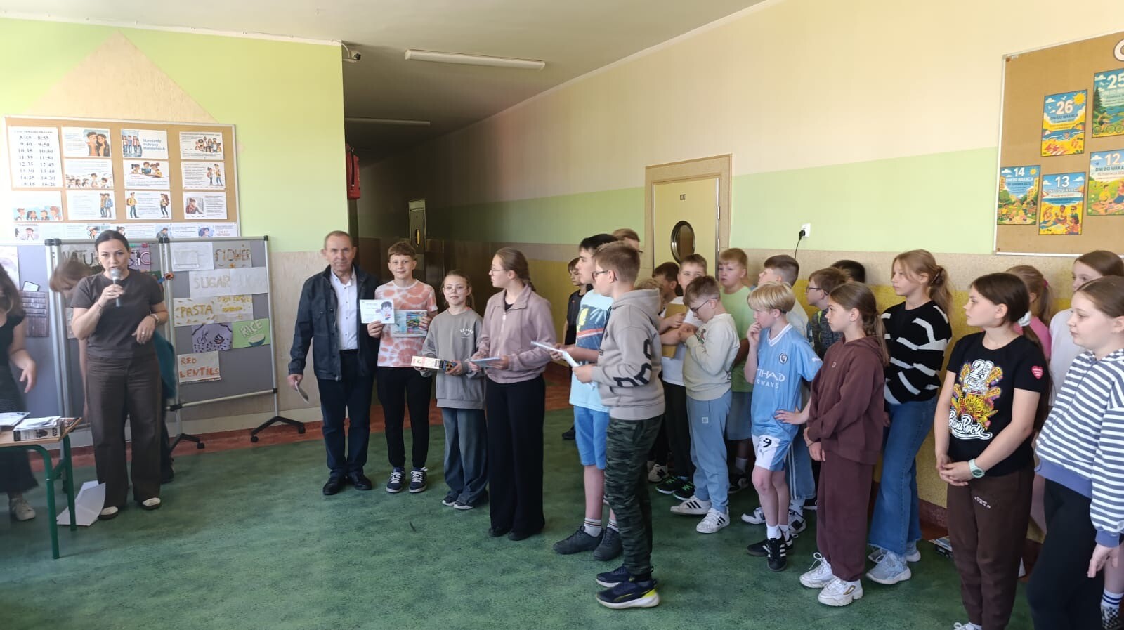 Podczas uroczystości wręczono nagrody i dyplomy uczniom, którzy wyróżnili się udziałem oraz osiągnięciami w konkursach przedmiotowych i zawodach sportowych. Gratulacje otrzymali również ci, którzy przez cały semestr systematycznie pracowali, rozwijali swoje pasje oraz godnie reprezentowali szkołę w różnych wydarzeniach.
