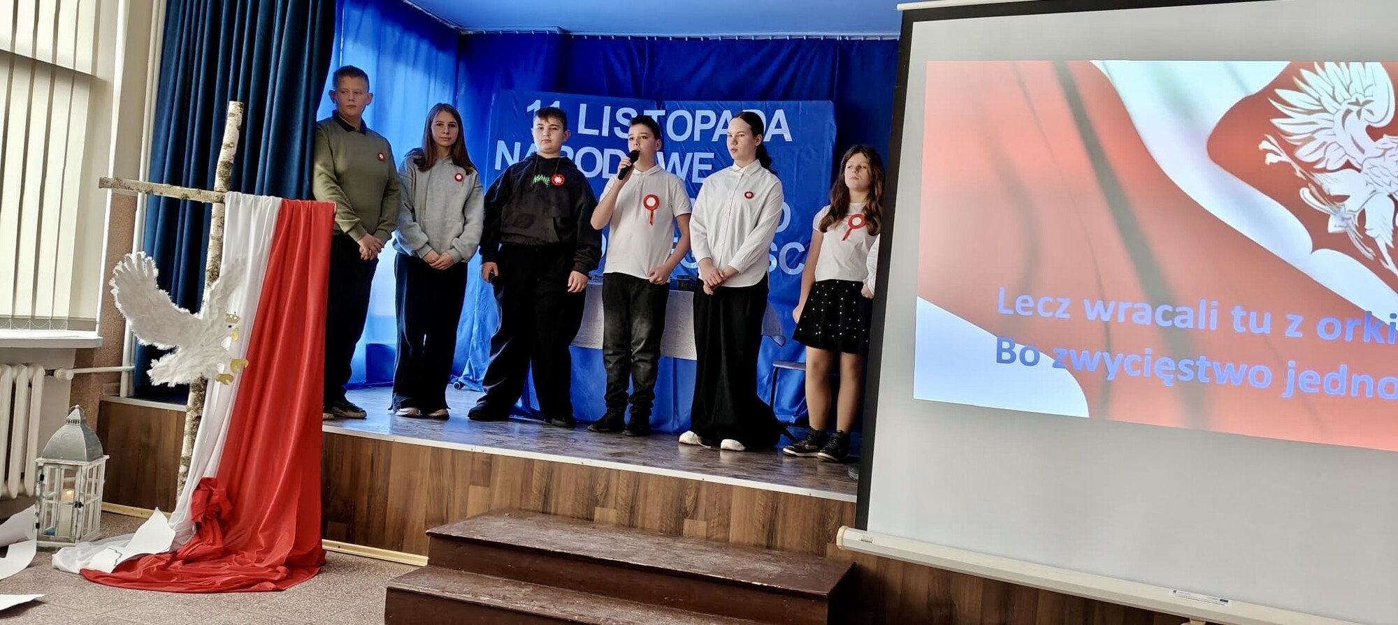 Dziś w naszej szkole odbył się uroczysty apel z okazji Narodowego Święta Niepodległości. Uczniowie przygotowali piękny program artystyczny, w którym przypomnieli najważniejsze wydarzenia prowadzące do odzyskania przez Polskę niepodległości. Występy recytatorskie, pieśni patriotyczne oraz część historyczna stworzyły niezwykłą atmosferę refleksji i wdzięczności za wolność.