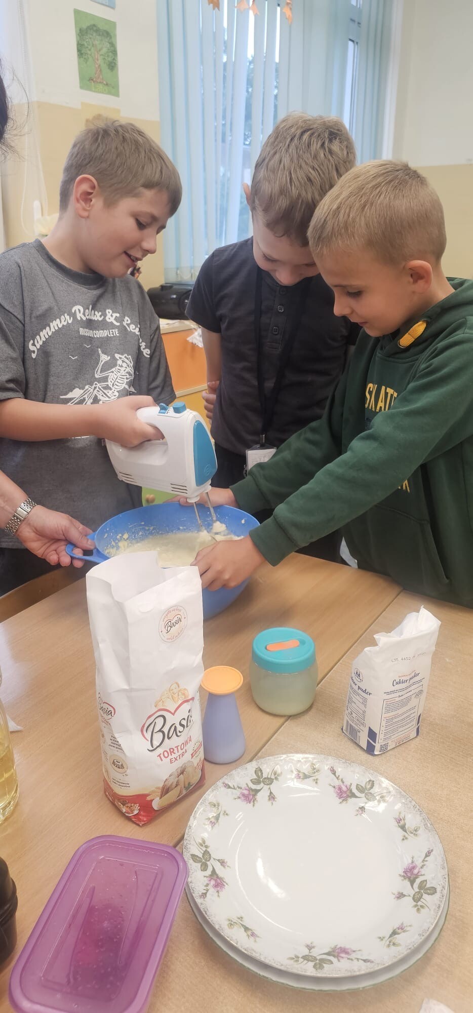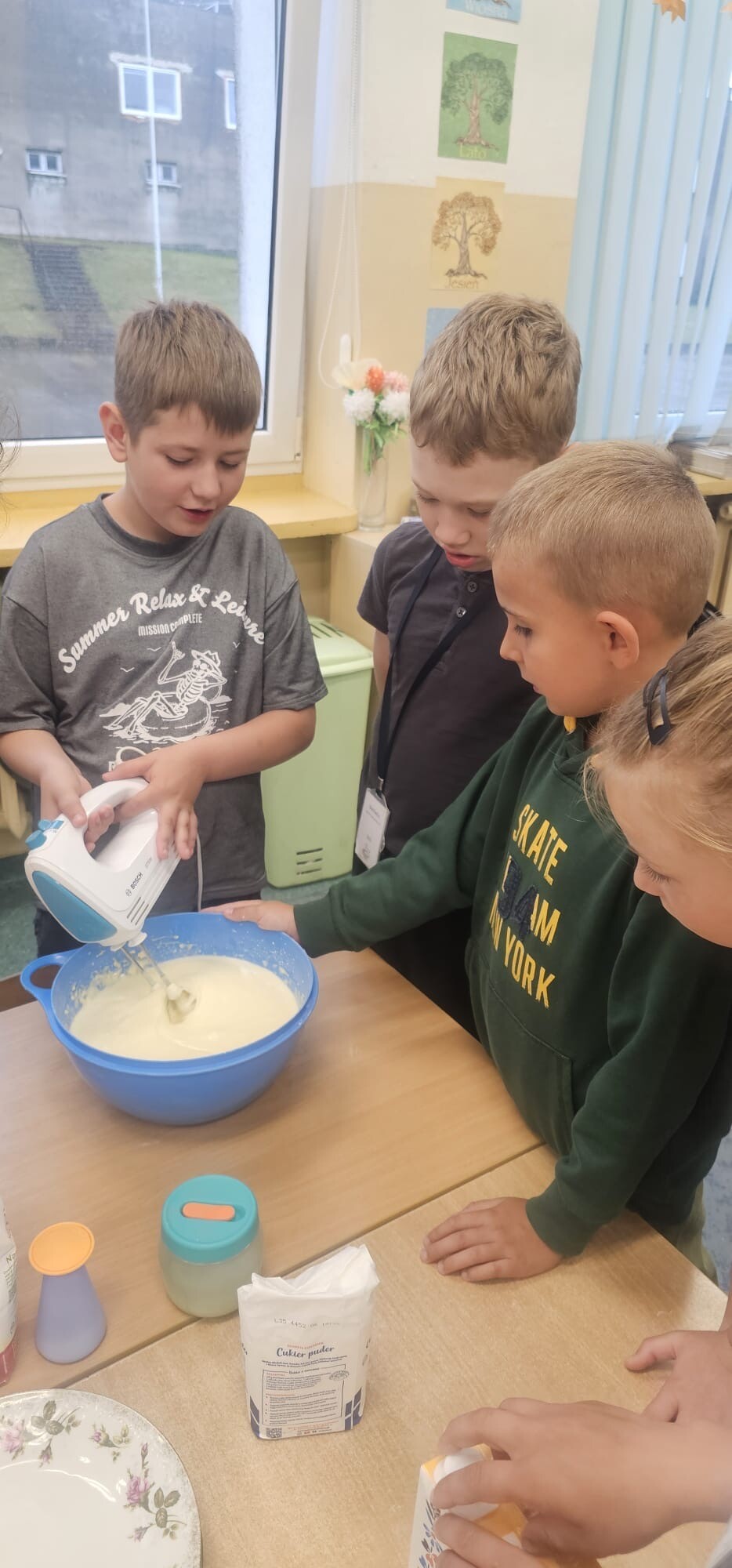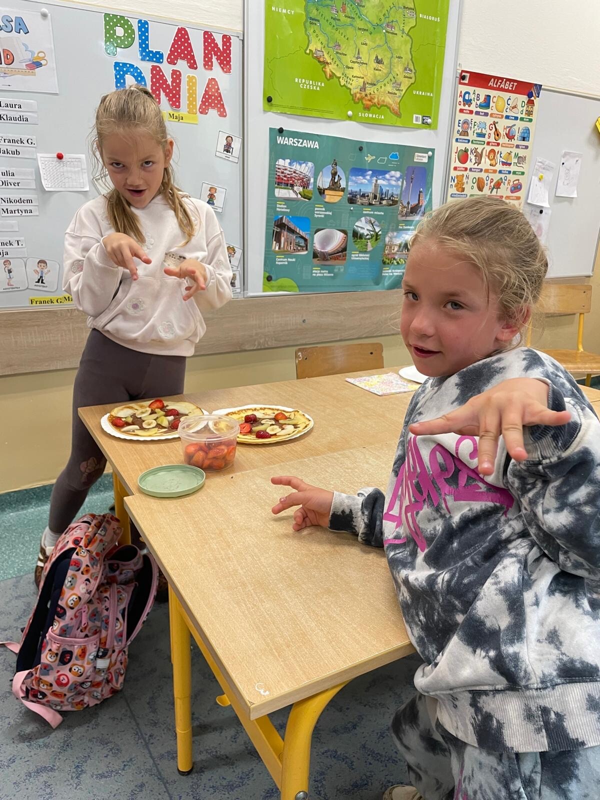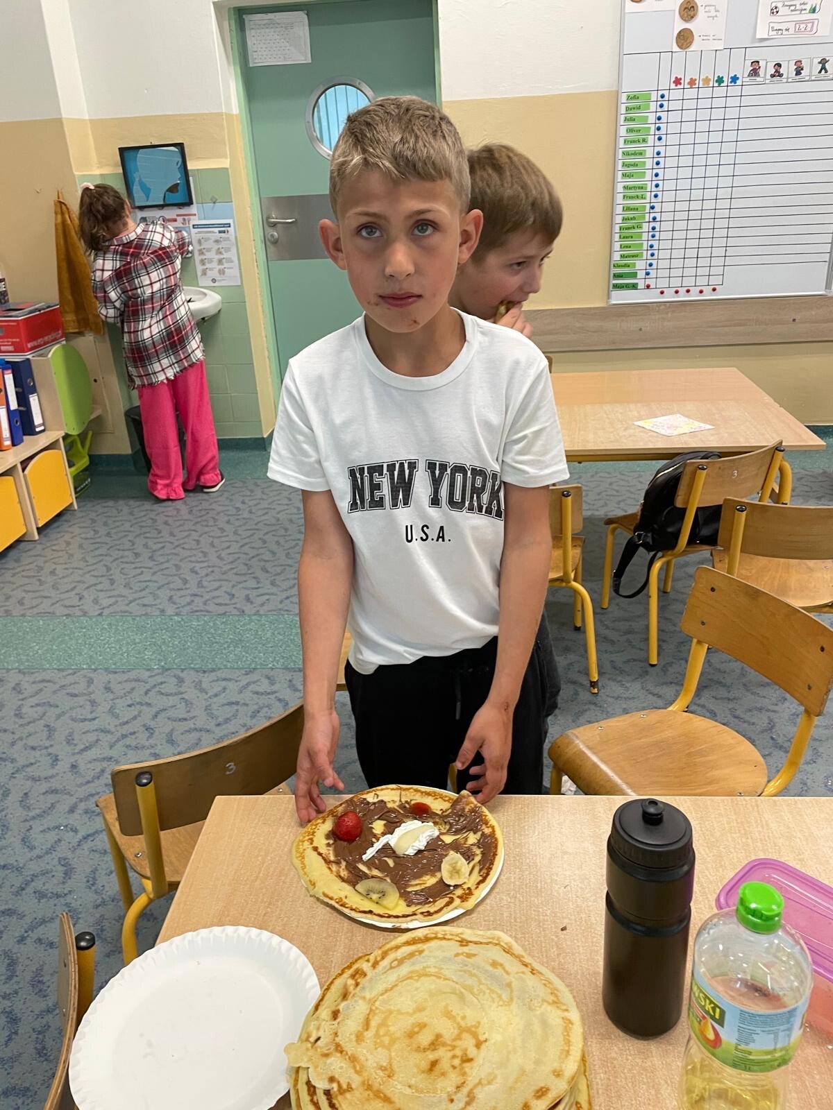 Dziś w klasie 1d unosiły się zapachy, od których każdy łasuch poczułby szybsze bicie serca. Uczniowie zamienili się w mistrzów patelni i gofrownic — na stołach pojawiły się naleśniki, gofry, a na nich prawdziwe cuda: dżemy, czekolada, owoce i... szczypta radości!Było pysznie, słodko i wesoło, a uśmiechy dzieci mówiły jedno: "Możemy to robić codziennie?"