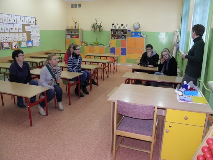 10 marca 2012 nasza szkoła czekała na odwiedziny najmłodszych, przyszłorocznych uczniów i ich rodziców. Przybyłych gości przywitała pani wicedyrektor S. Łukacz. Podczas 3-godzinnego spotkania dzieci zwiedziły szkołę, wykonywały prace plastyczne lub bawiły się w sali zabaw. Pani L. Hinc, wychowawca dzieci 6-letnich, odpowiadała na pytania rodziców dotyczące organizacji czasu pracy podczas pobytu w szkole. Rodzice dowiedzili się także o zasadach zapisów do klasy pierwszej. Na każde dziecko czekał słodki poczęstunek i drobne upominki. W spotkaniu uczestniczyły takze wychowawczynie obecnych klas trzecich - p. E. Mohr, p. B. Kurkowska i p. L. Wasielewska.