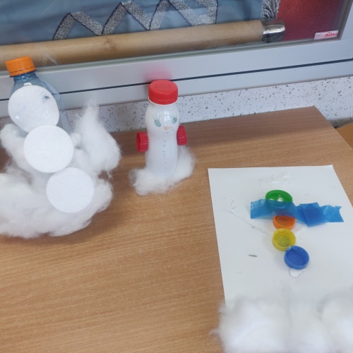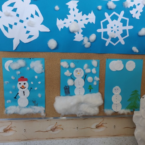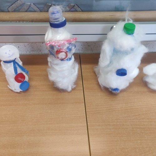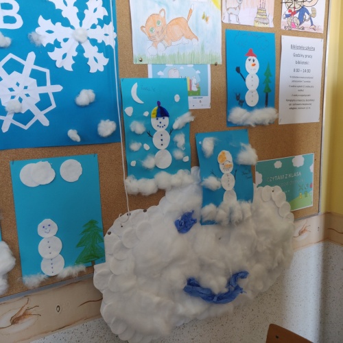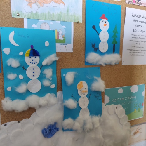 Wspólnie wykonaliśmy plakat, zachęcający innych uczniów do przeczytania tej wspaniałej książki oraz zrealizowaliśmy EKO WYZWANIE. Z różnorodnych odpadów, nadających się do recyklingu, wykonaliśmy figurki i plakaty zimowych bałwanków. Ozdobiły one naszą bibliotekę i nadały jej zimowy charakter.
