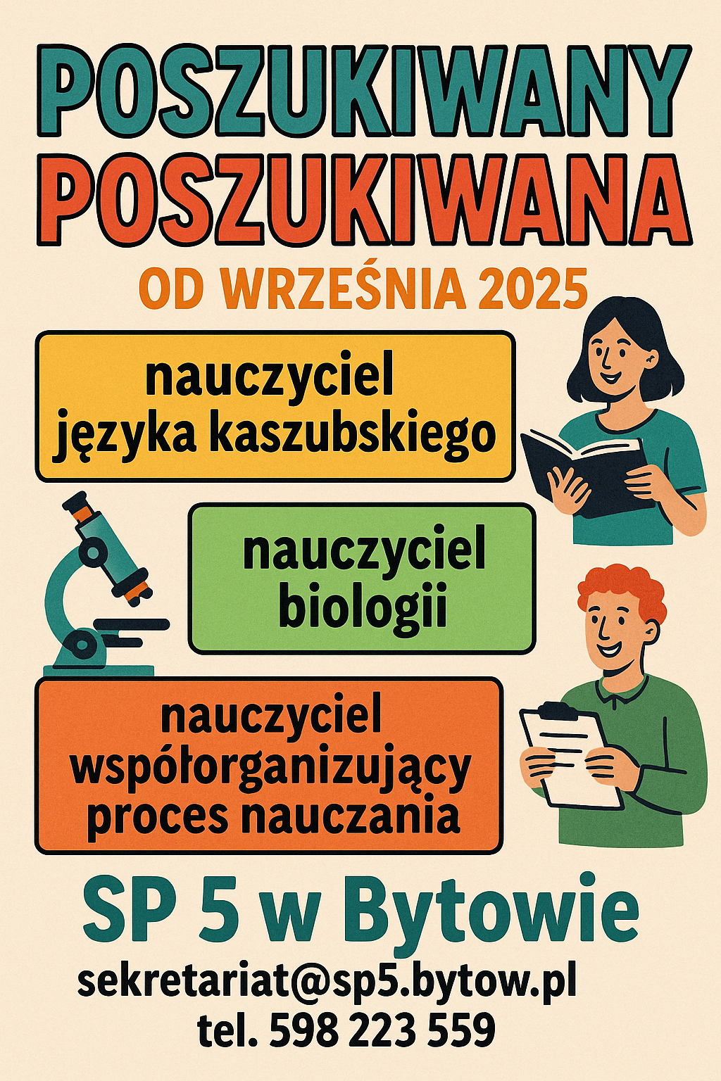 Szkoła Podstawowa nr 5 w Bytowie poszukuje nauczycieli na stanowiska: