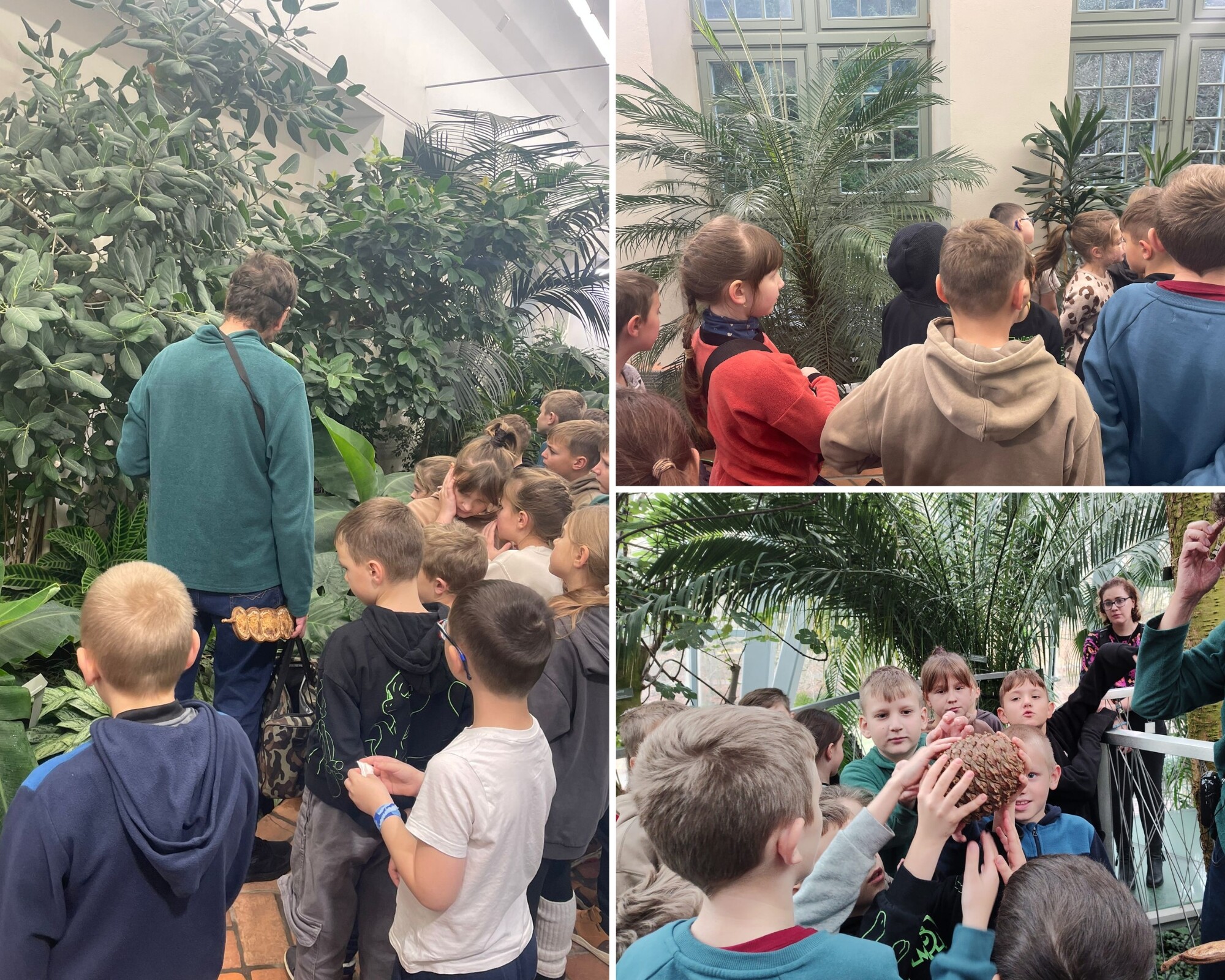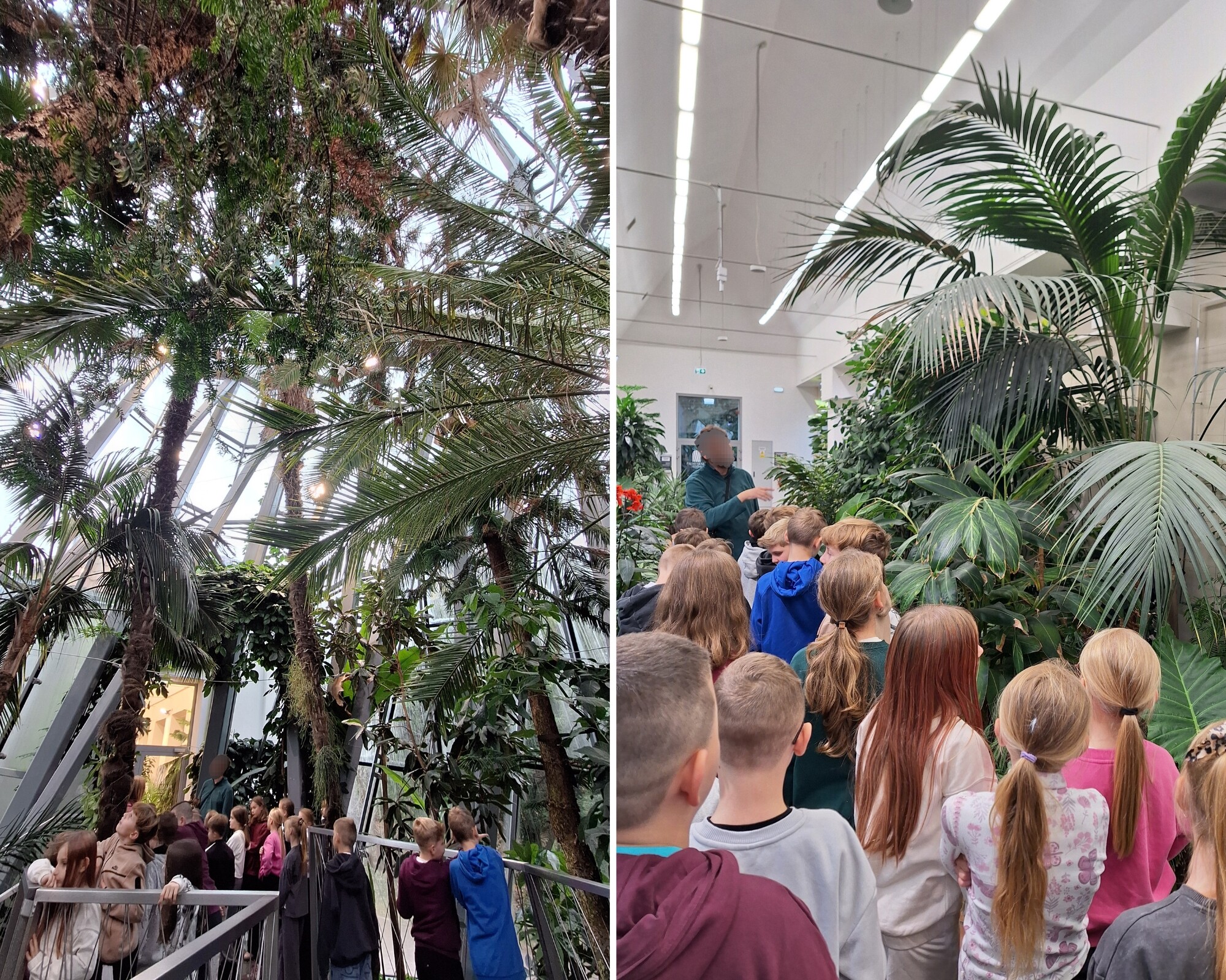 Kolejnym etapem wyjazdu była wizyta w Palmiarni w Parku Oliwskim. Tam uczniowie obejrzeli różnorodne rośliny pochodzące z cieplejszych stref klimatycznych. Poznali wiele ciekawostek dotyczących ich pochodzenia oraz sposobów przystosowania do środowiska.