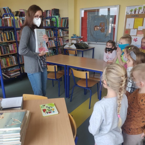 Podczas pierwszej wizyty w bibliotece dzieci poznały zasady funkcjonowania biblioteki i dowiedziały się jak dbać o książki.