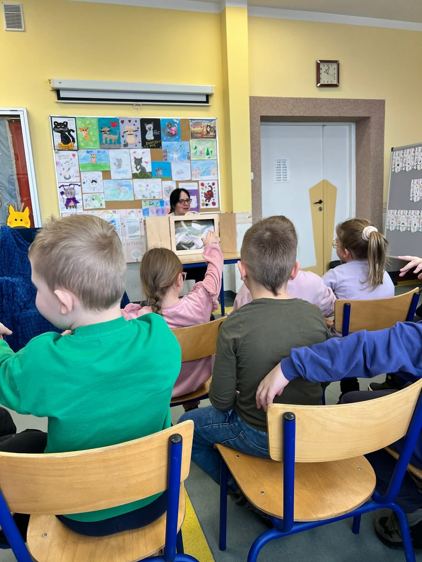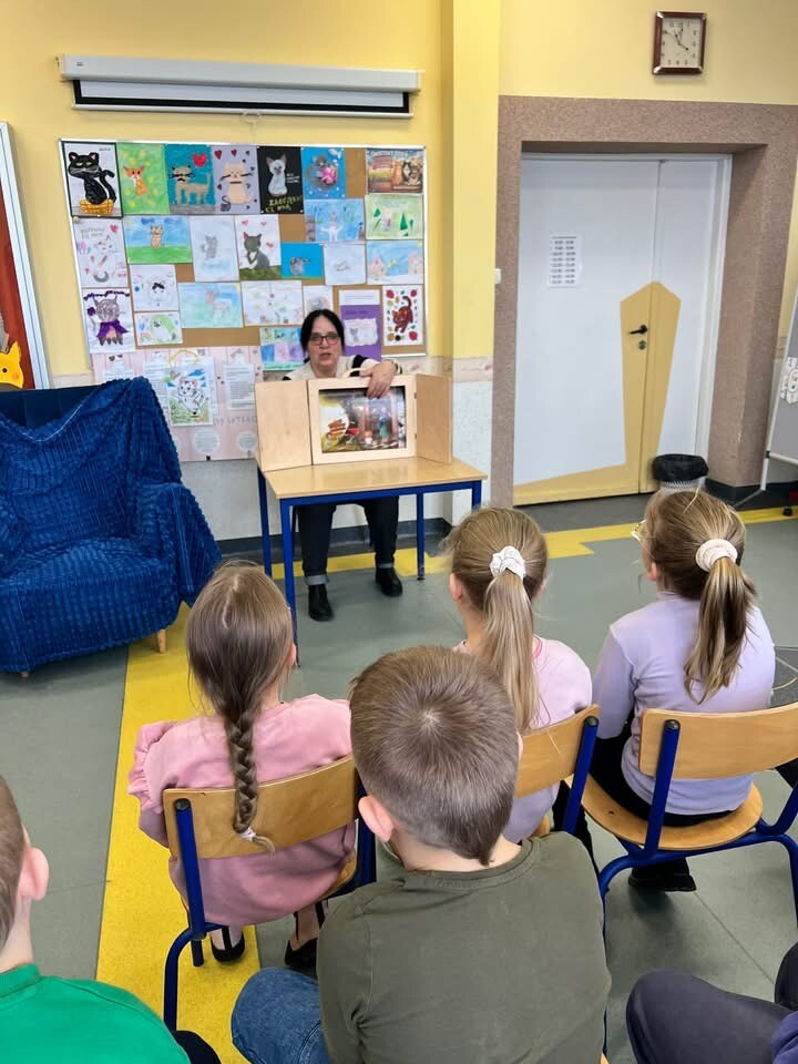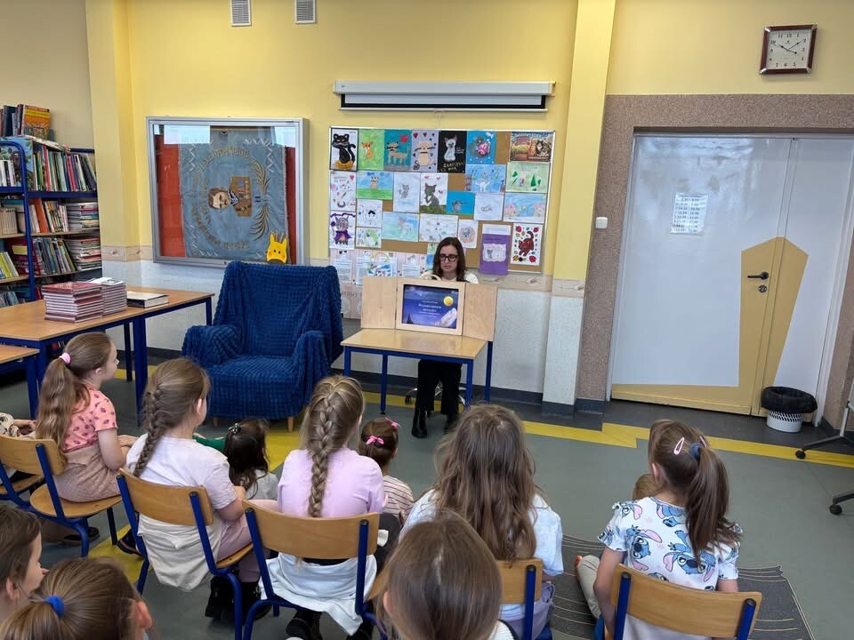 Podczas zajęć uczniowie mieli okazję obejrzeć teatrzyk Kamishibai pt. „Wypożyczalnia skrzydeł. Opowieść o magii czytania”. Następnie sprawdziliśmy wiedzę naszych pierwszoklasistów. Okazało się, że wszyscy uczniowie doskonale znają bohaterów bajek i baśni. Po złożeniu uroczystego ślubowania uczniowie zostali pasowani na czytelników i otrzymali pamiątkowe dyplomy. Podczas wydarzenia pierwszoklasiści otrzymali również wyprawki czytelnicze w ramach kampanii „Mała książka – wielki człowiek”, realizowanej przez Instytut Książki.