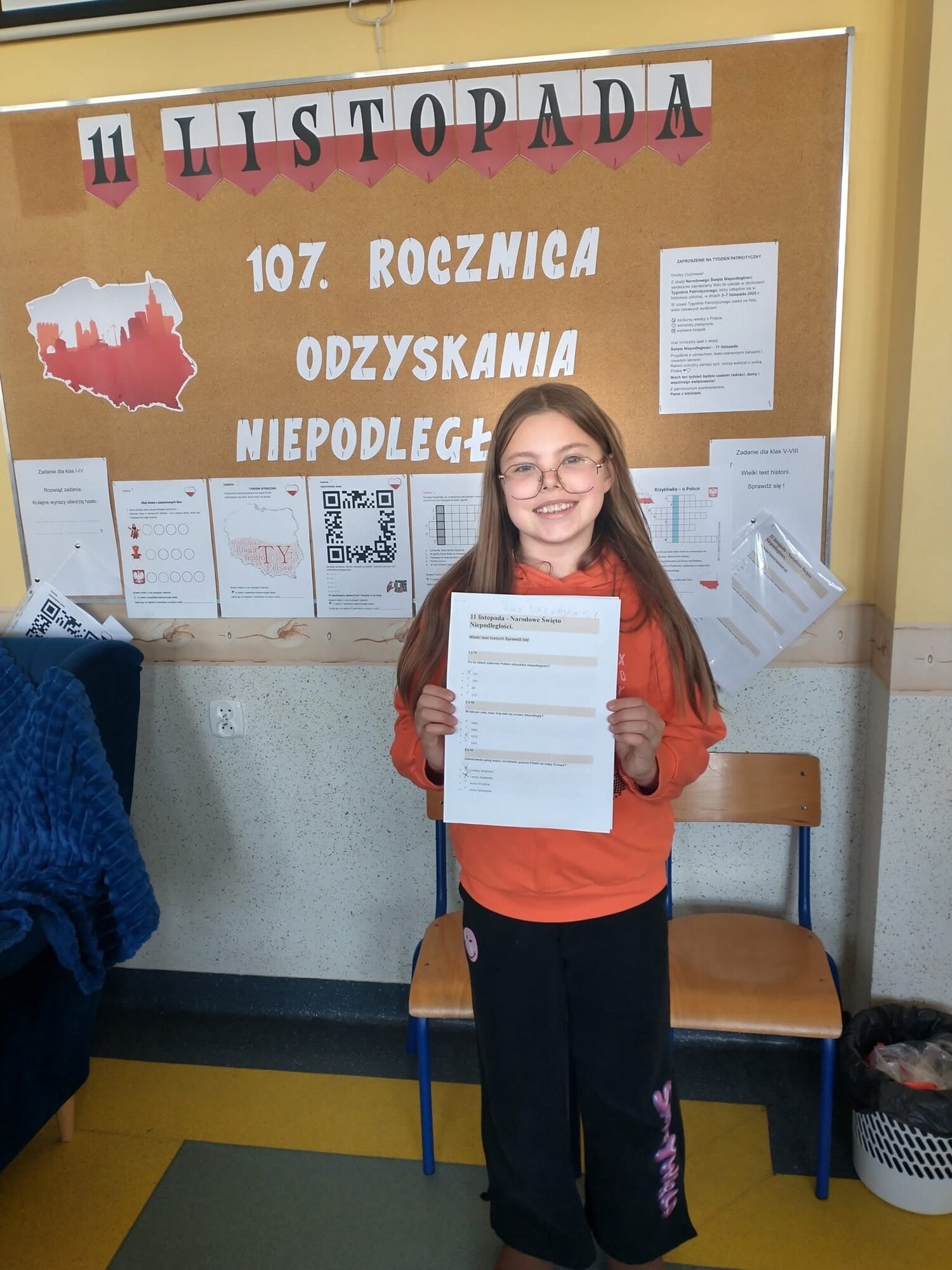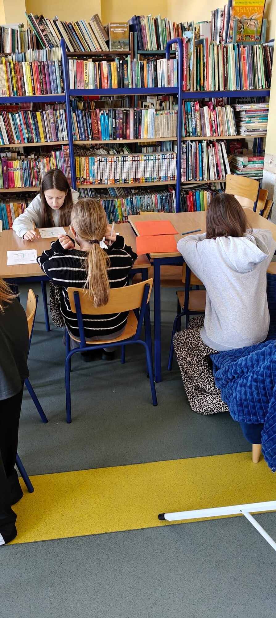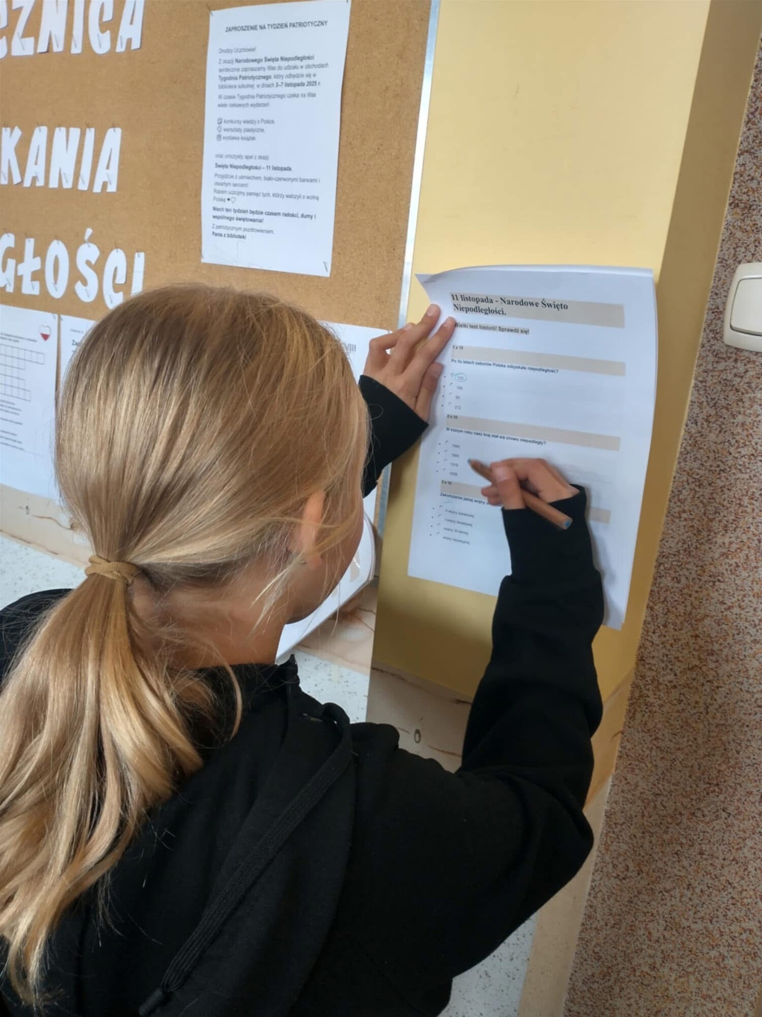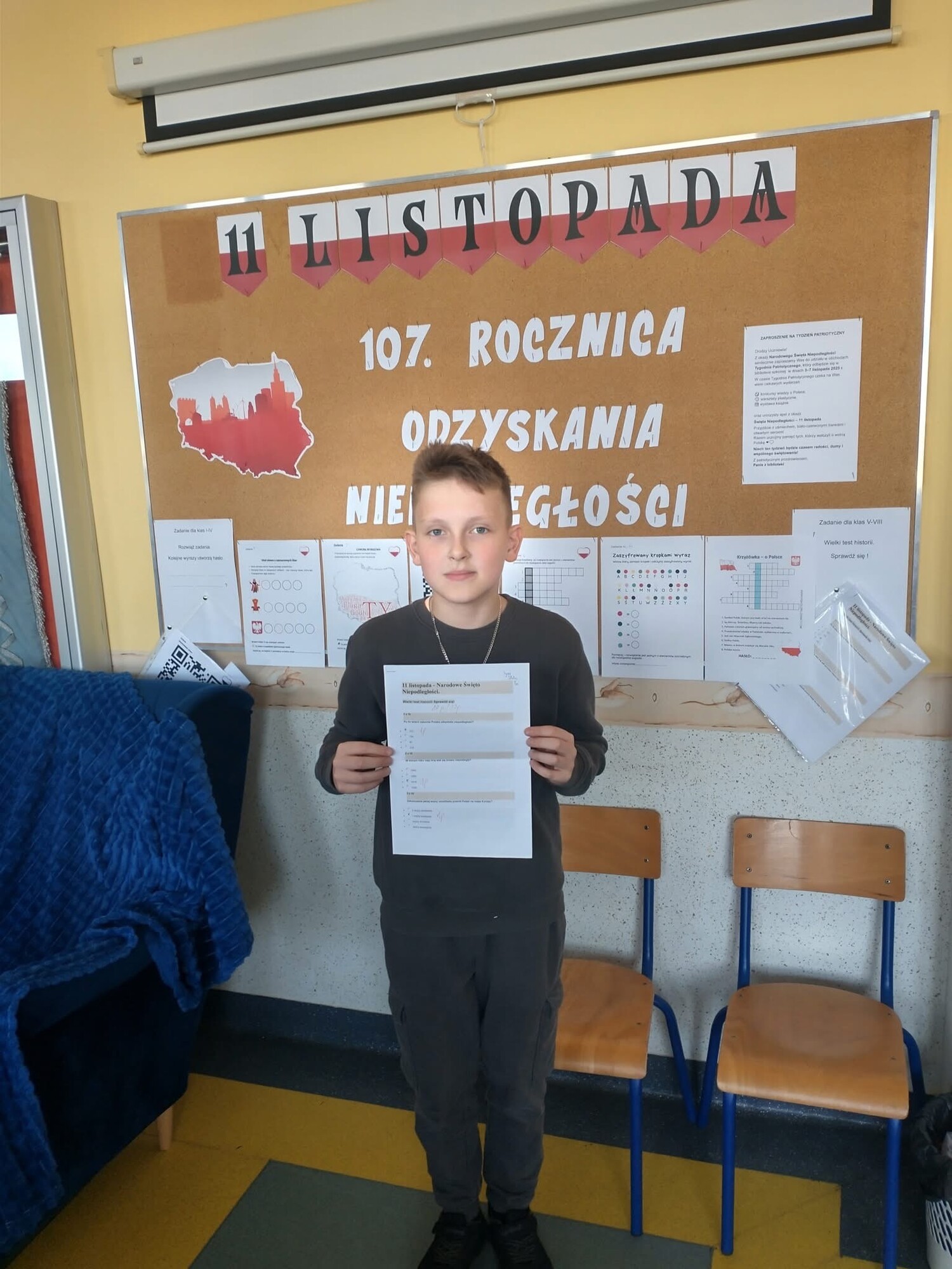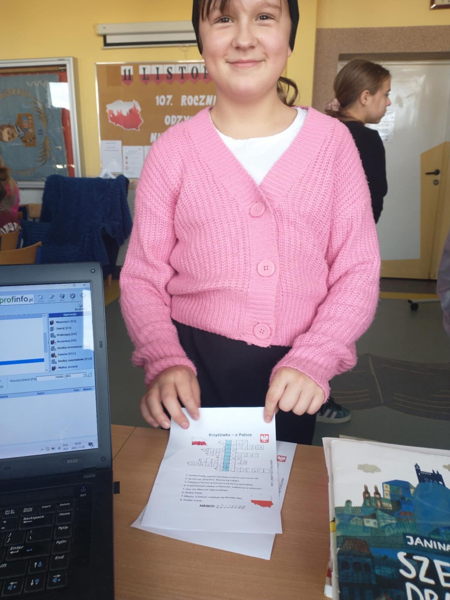 Dzisiaj środa, trzeci dzień „Tydzień Patriotyczny w bibliotece szkolnej”. Starsi uczniowie rozwiązywali „Wielki test historii – Narodowe Święto Niepodległości”, a młodsi „Krzyżówkę o Polsce”.