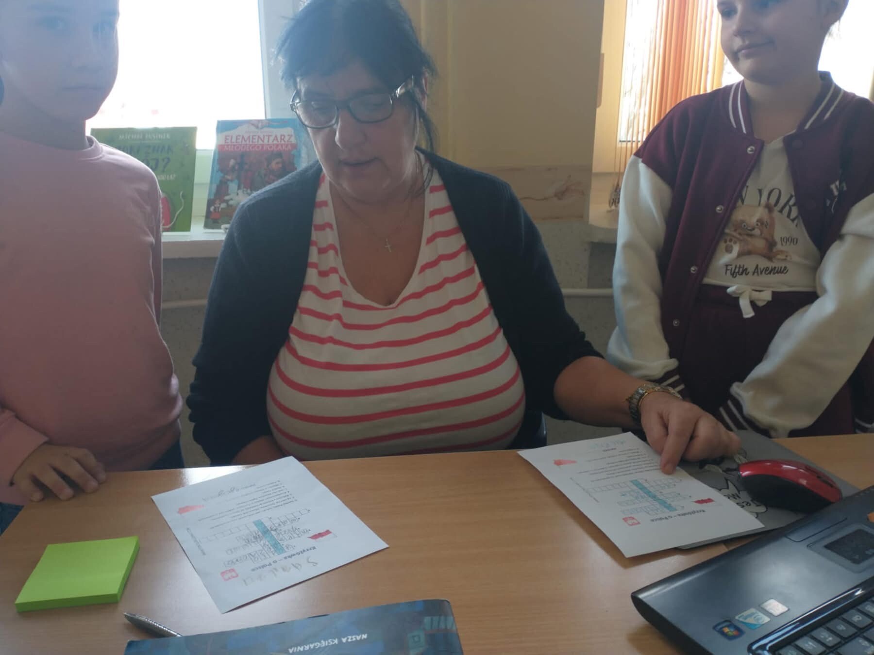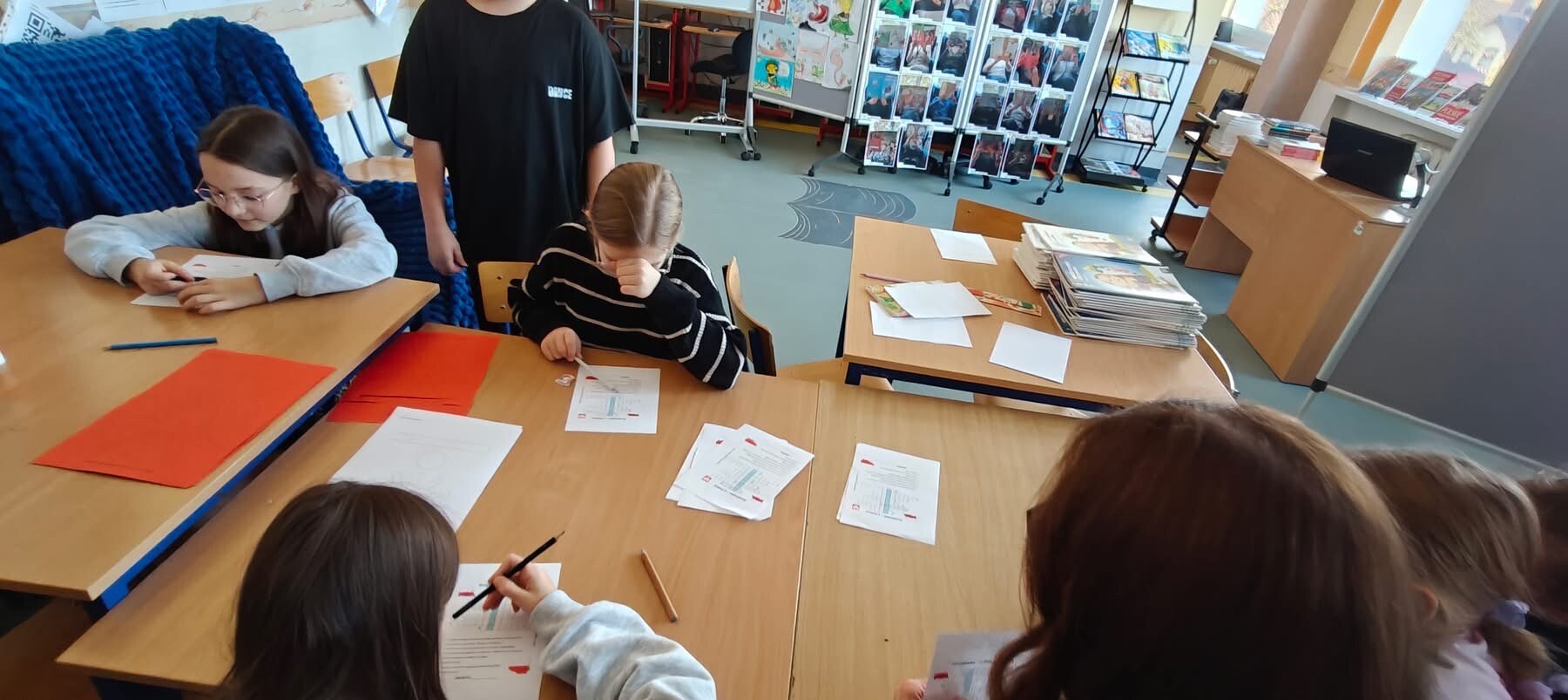 Uczniowie klas 2 i 3 aktywnie włączyli się w świętowanie rozwiązując baśniowe krzyżówki.