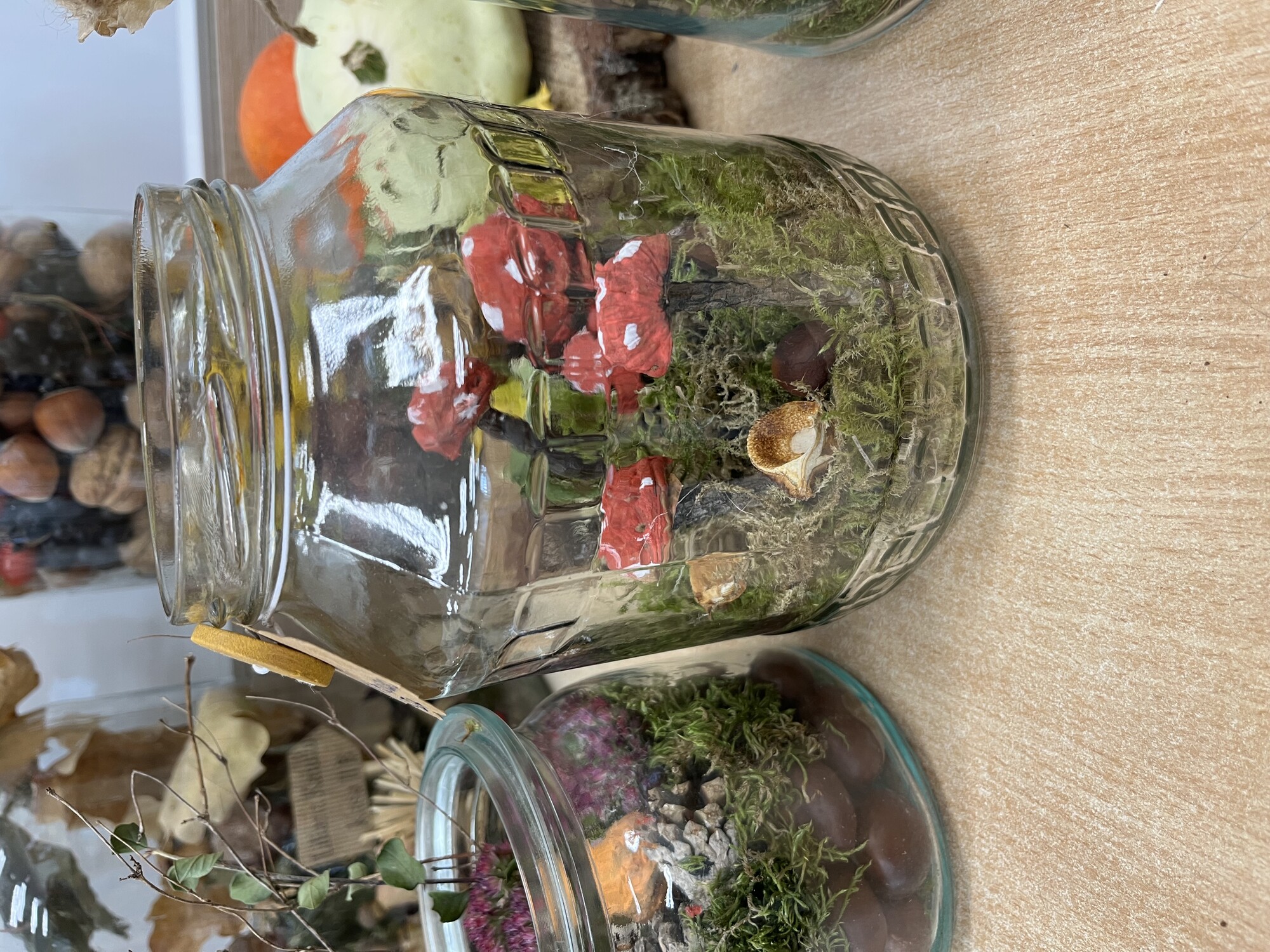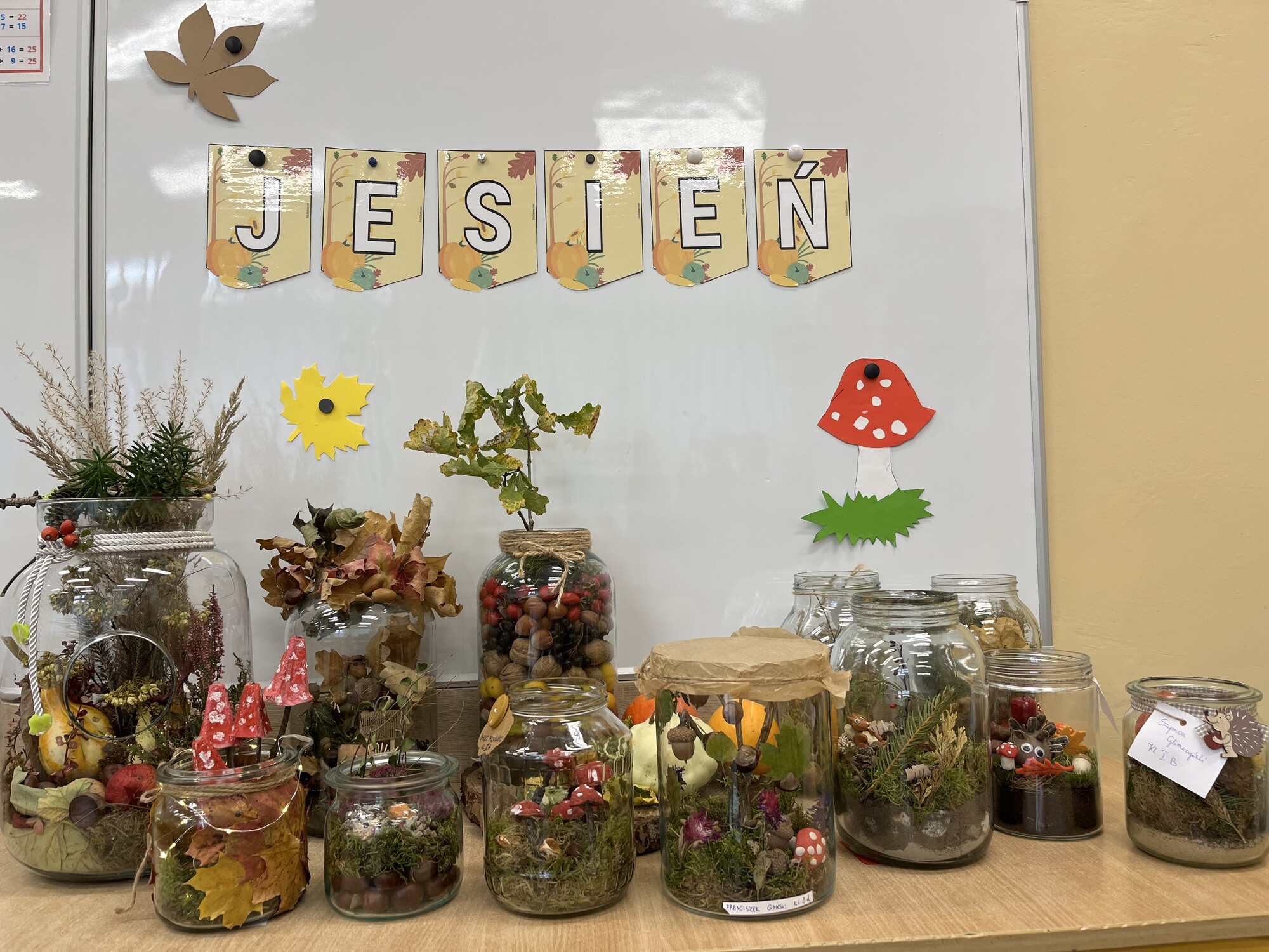 W październiku w naszej szkole odbył się konkurs plastyczno-techniczny „Jesień w słoiku”, skierowany do uczniów klas I–III. Zadaniem uczestników było przygotowanie przestrzennej jesiennej kompozycji zamkniętej w słoiku.