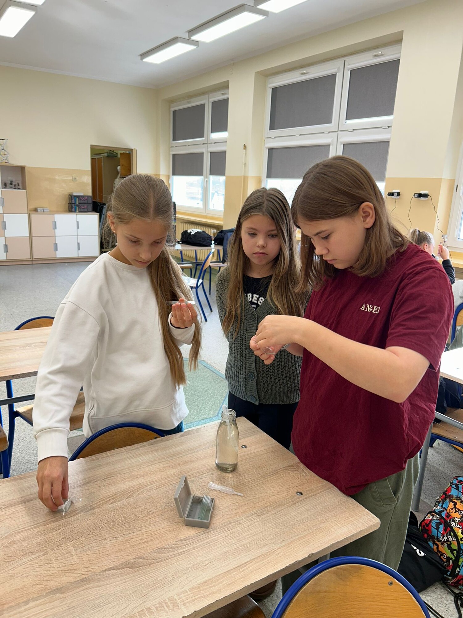 Nasi młodzi biolodzy odkrywali tajemnice mikroskopijnego świata!Uczyli się obsługi mikroskopu, samodzielnie przygotowywali preparaty z wody bagiennej i poszukiwali w nich żywych organizmów.