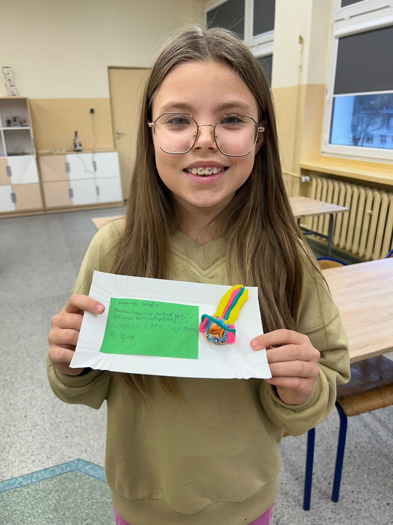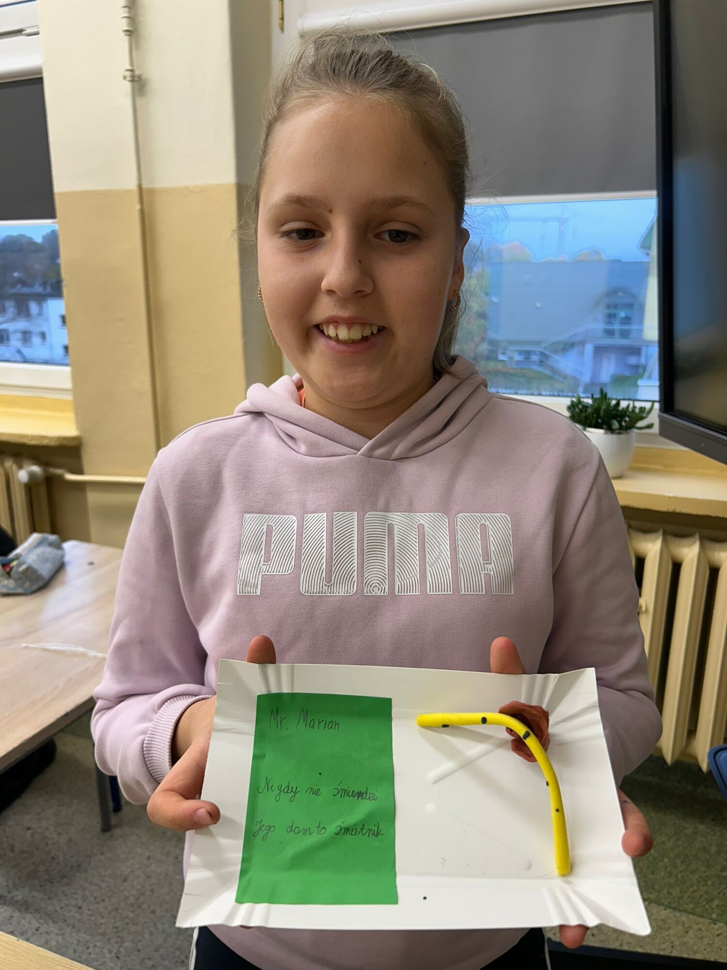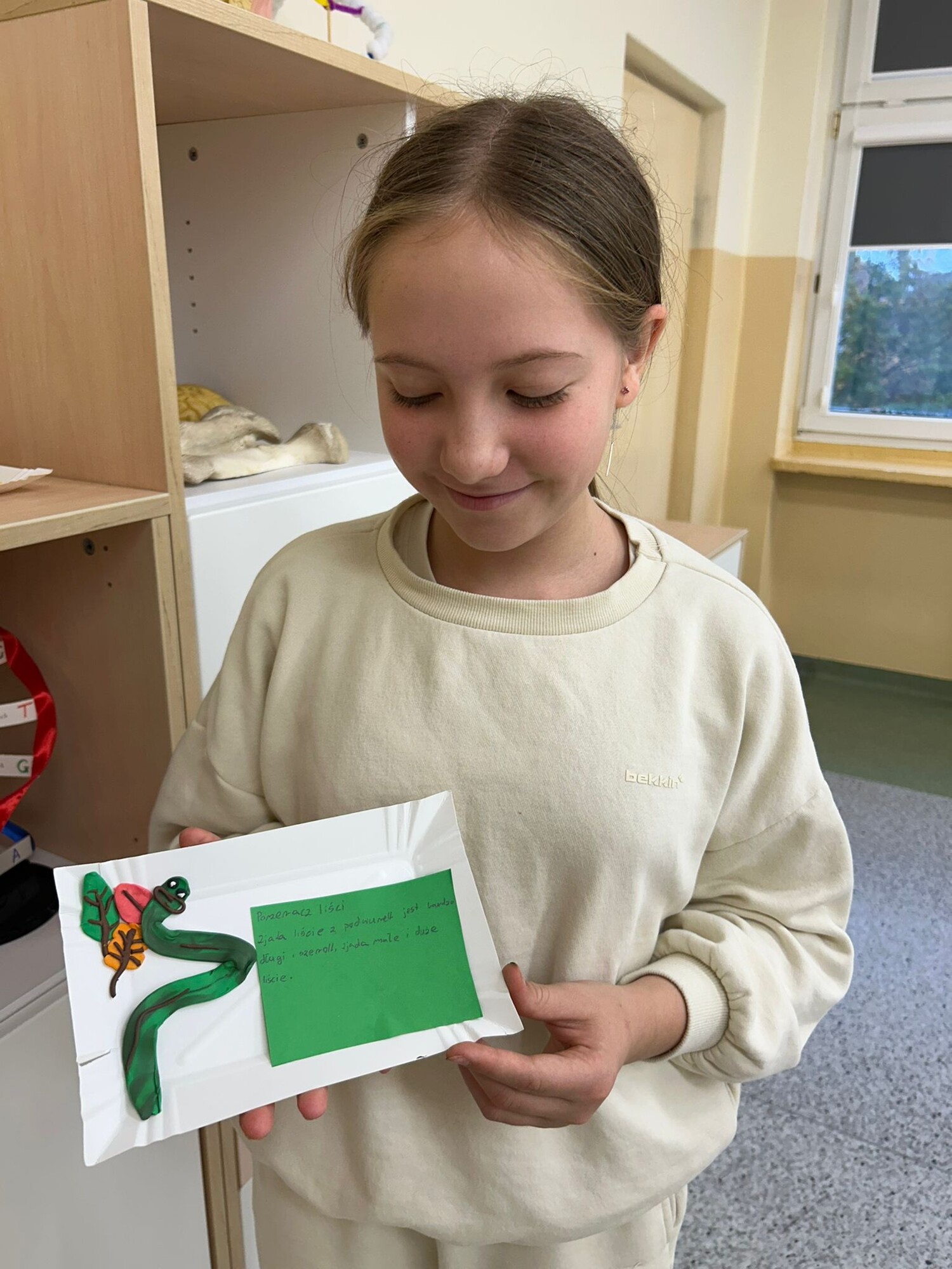 Potem przyszła pora na mniej lubianych mieszkańców przyrody – płazińce i nicienie, czyli… pasożyty! Uczniowie postanowili je odczarować – tworząc z plasteliny swoje własne „pasożyty przyszłości”, które pomagają ludziom i naturze.