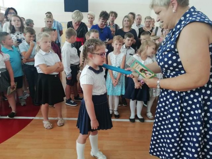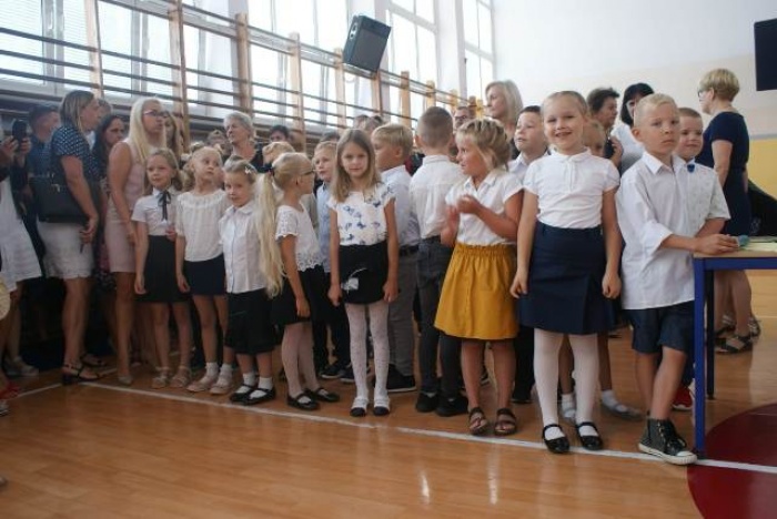 Uroczystość klas pierwszych rozpoczęła sięapelem w sali gimnastycznej. Na początku wprowadzony został sztandar szkoły i odśpiewany hymn państwowy. Następnie głos zabrał Dyrektor Szkoły – p. Jerzy Jobczyk, który serdecznie powitał wszystkich uczniów – w szczególności uczniów, którzy po raz pierwszy przyszli do naszej szkoły oraz rodziców i grono pedagogiczne. Po tym wystąpieniu słowa do uczniów i nauczycieli oraz rodziców skierował zaproszony gość Wiceburmistrz Mariusz Oszmaniec. Goście obejrzeli część artystyczną przygotowaną przez klasę 1b pod kierownictwem Pani Sylwii Stachańczyk Piłat. Po części oficjalnej i pasowaniu na ucznia klasy pierwszej, uczniowie udali się na spotkania z wychowawcami.