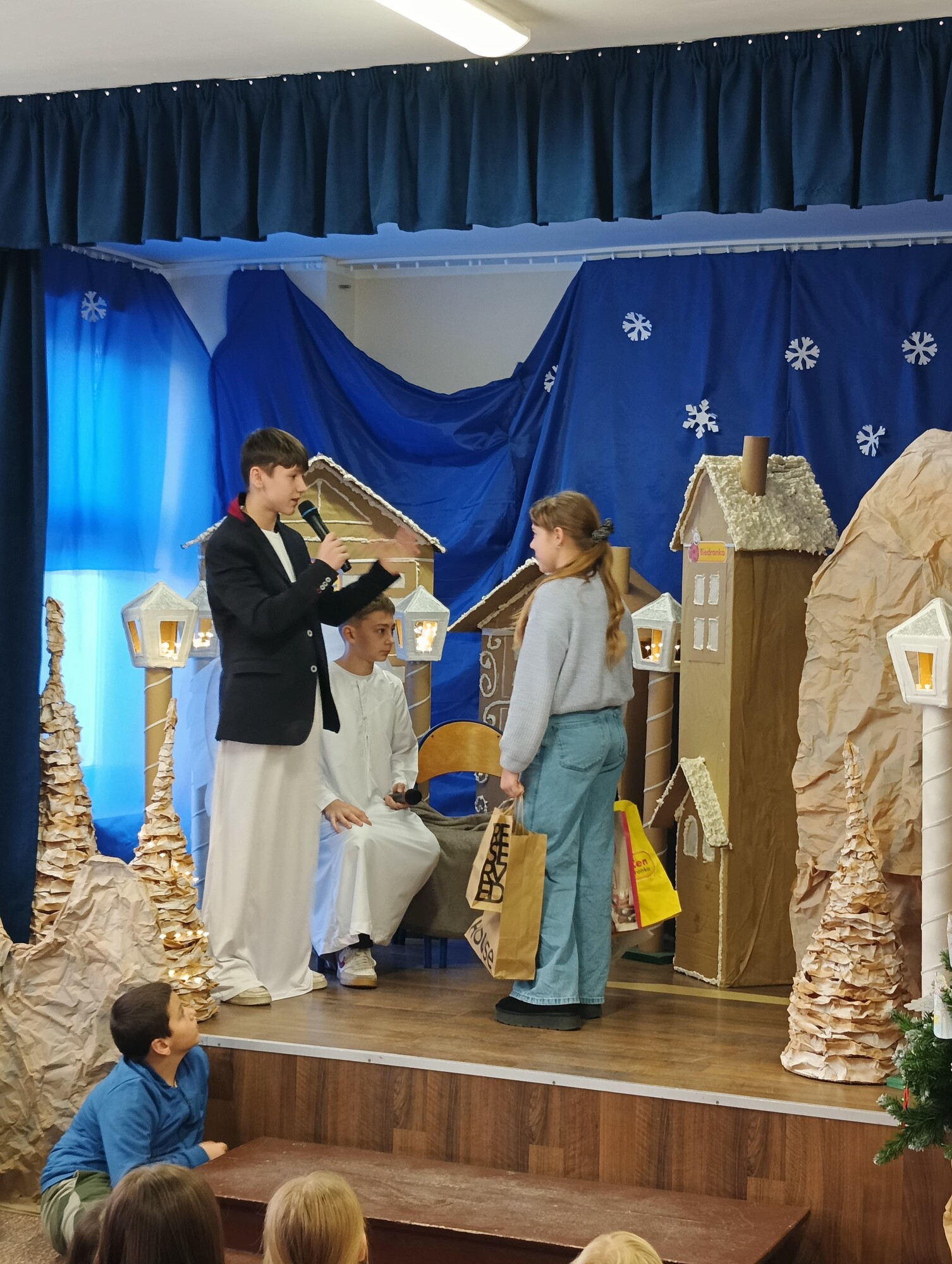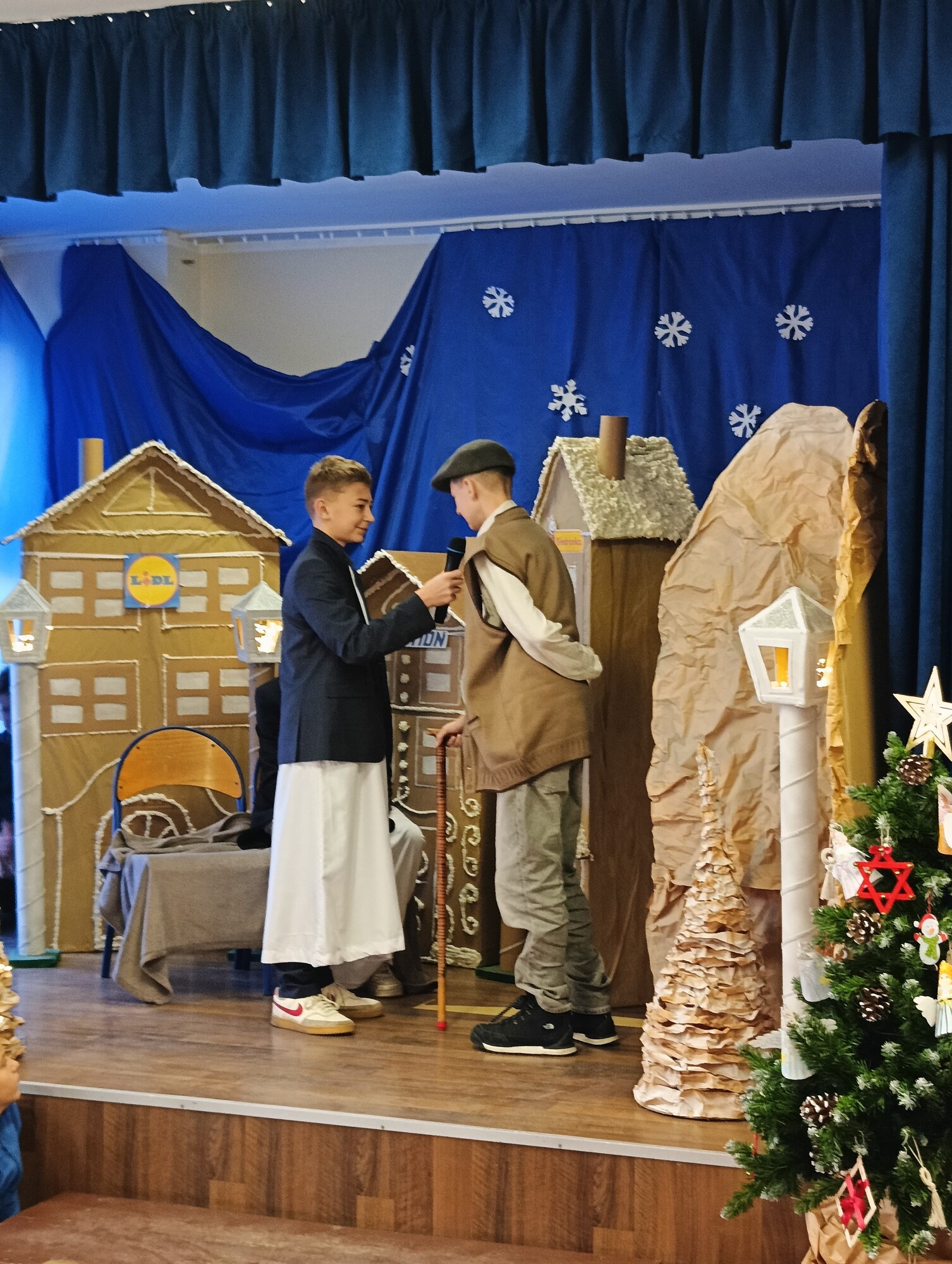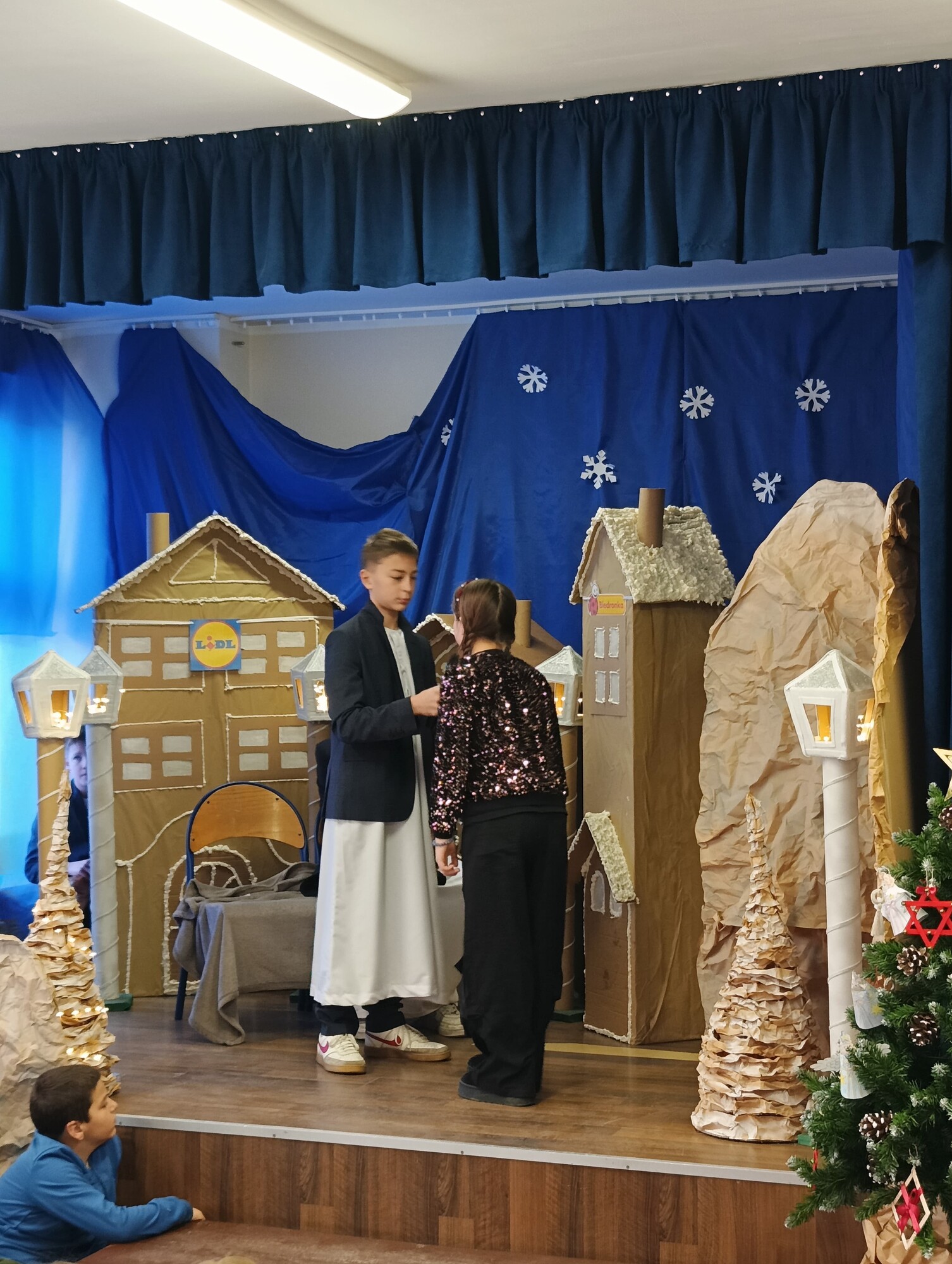 19 grudnia, z okazji zbliżających się Świąt Bożego Narodzenia, uczniowie klasy 6b wraz z wychowawczynią Moniką Gostomską oraz panią Kamillą Malską przygotowali wyjątkowe przedstawienie świąteczne pt. „Anielski kłopot”.