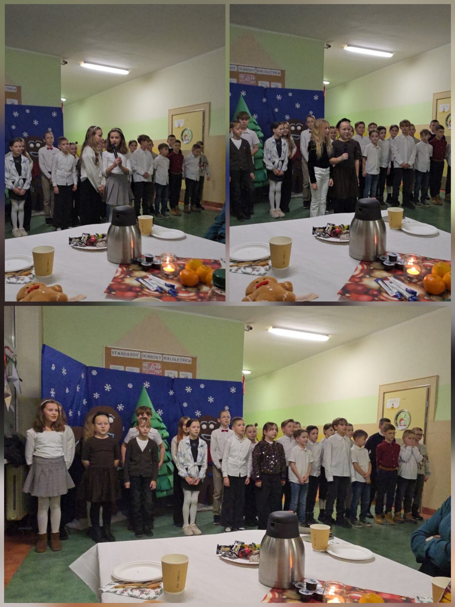 18 grudnia w naszej szkole odbyło się świąteczne spotkanie uczniów klasy 3c z rodzicami. Dzieci zaprezentowały krótki występ artystyczny nawiązujący do tradycji bożonarodzeniowych oraz obdarowały swoich bliskich własnoręcznie wykonanymi drobnymi upominkami.
