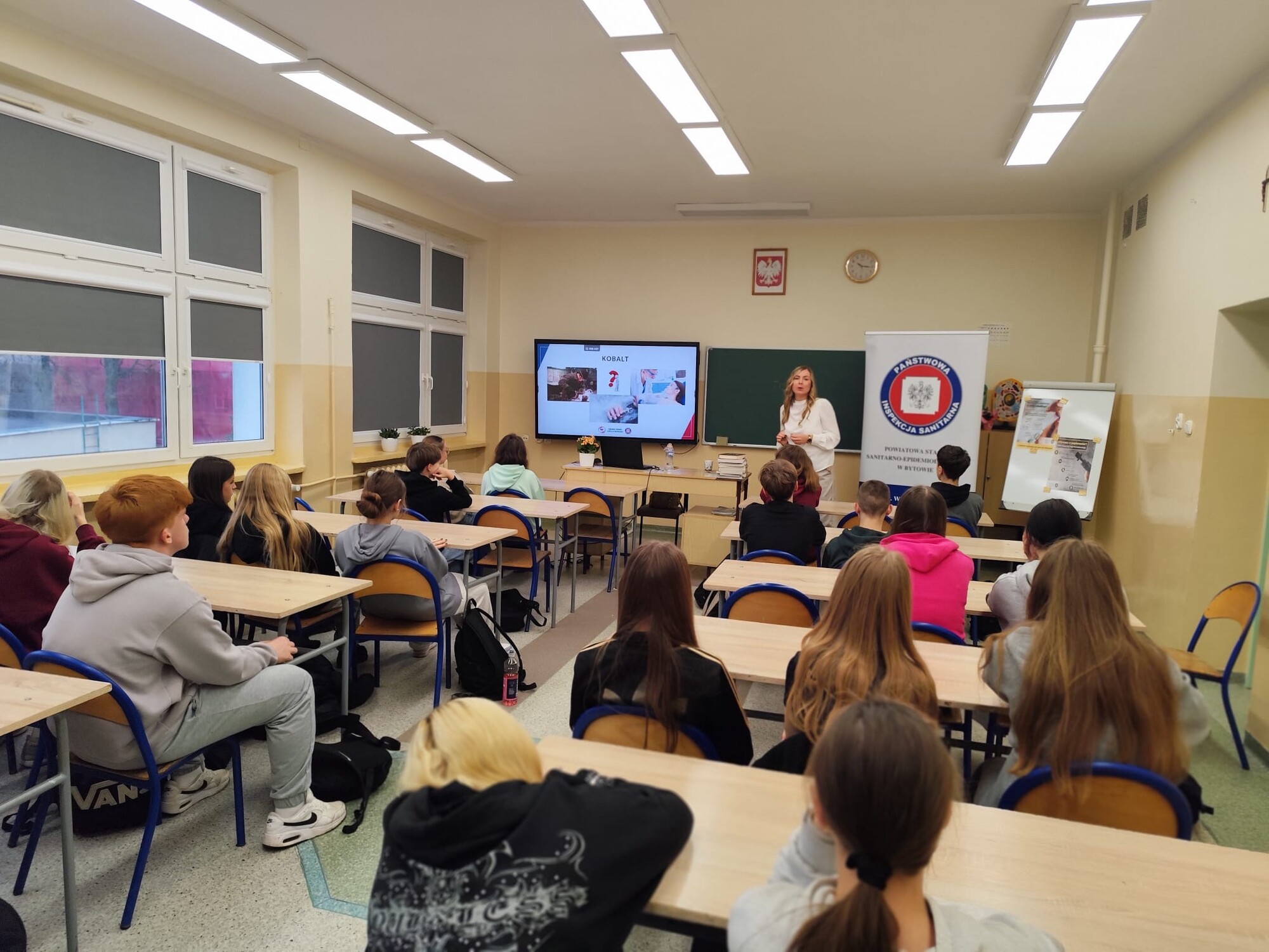 W piątek, 14 listopada, w naszej szkole odbyły się zajęcia psychoedukacyjne dla uczniów klas 8, prowadzone przez pracownika Powiatowej Stacji Sanitarno-Epidemiologicznej w Bytowie. Tematem spotkania były „Szkodliwości zdrowotne palenia papierosów i e-papierosów”.