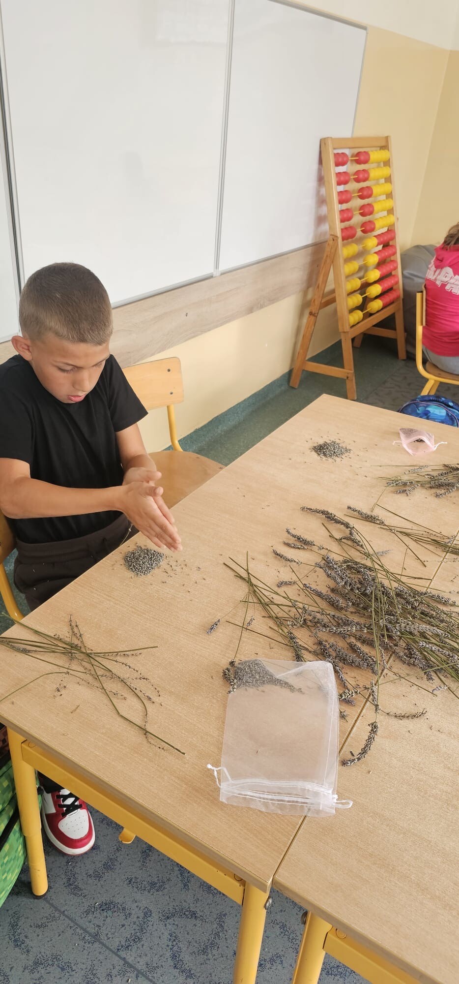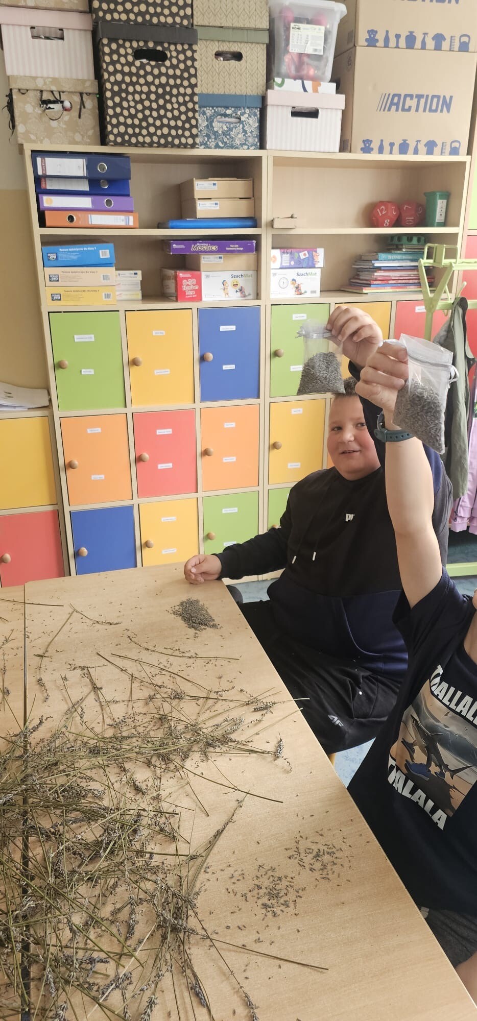 W dniu dzisiejszym uczniowie uczestniczyli w wyjątkowej lekcji , podczas której własnoręcznie tworzyli pachnące woreczki z lawendą.