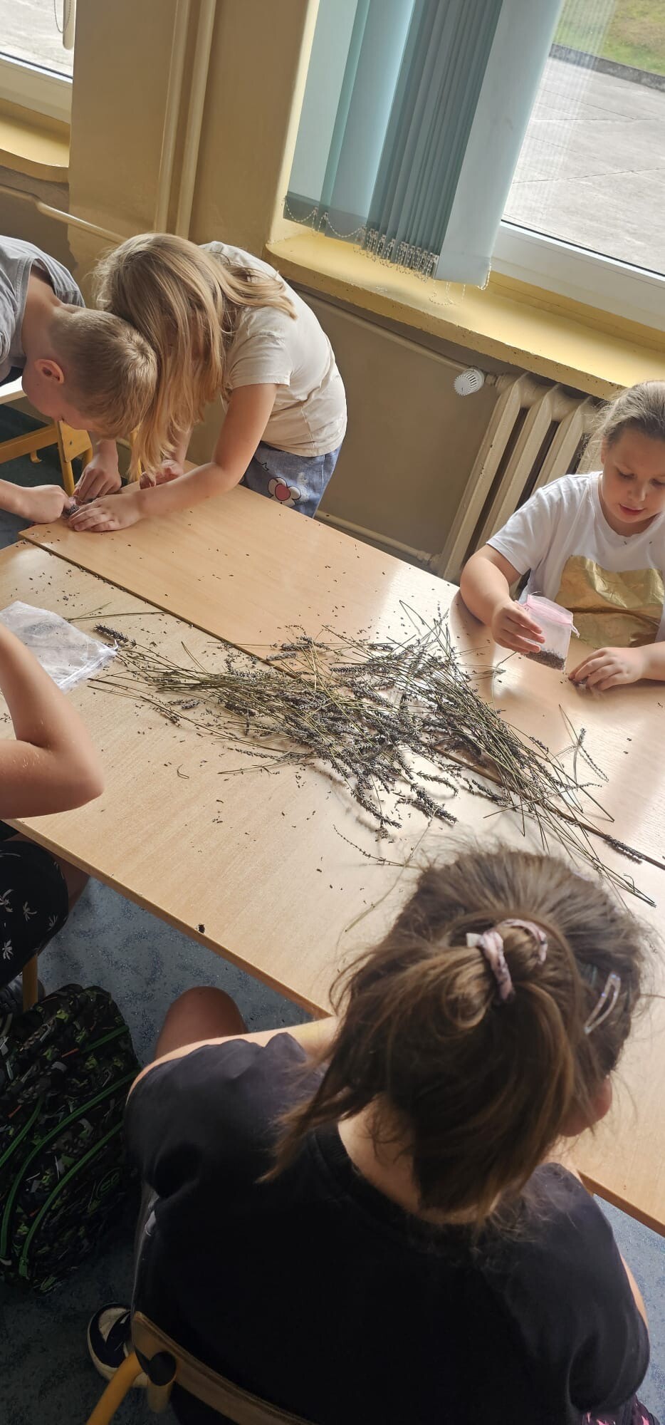 Najpierw dzieci starannie skubały zasuszone kwiaty, poznając ich niezwykły zapach i strukturę. Potem, z wielkim zaangażowaniem, wsypywały lawendę do saszetek, które stały się małymi zapachowymi skarbami.