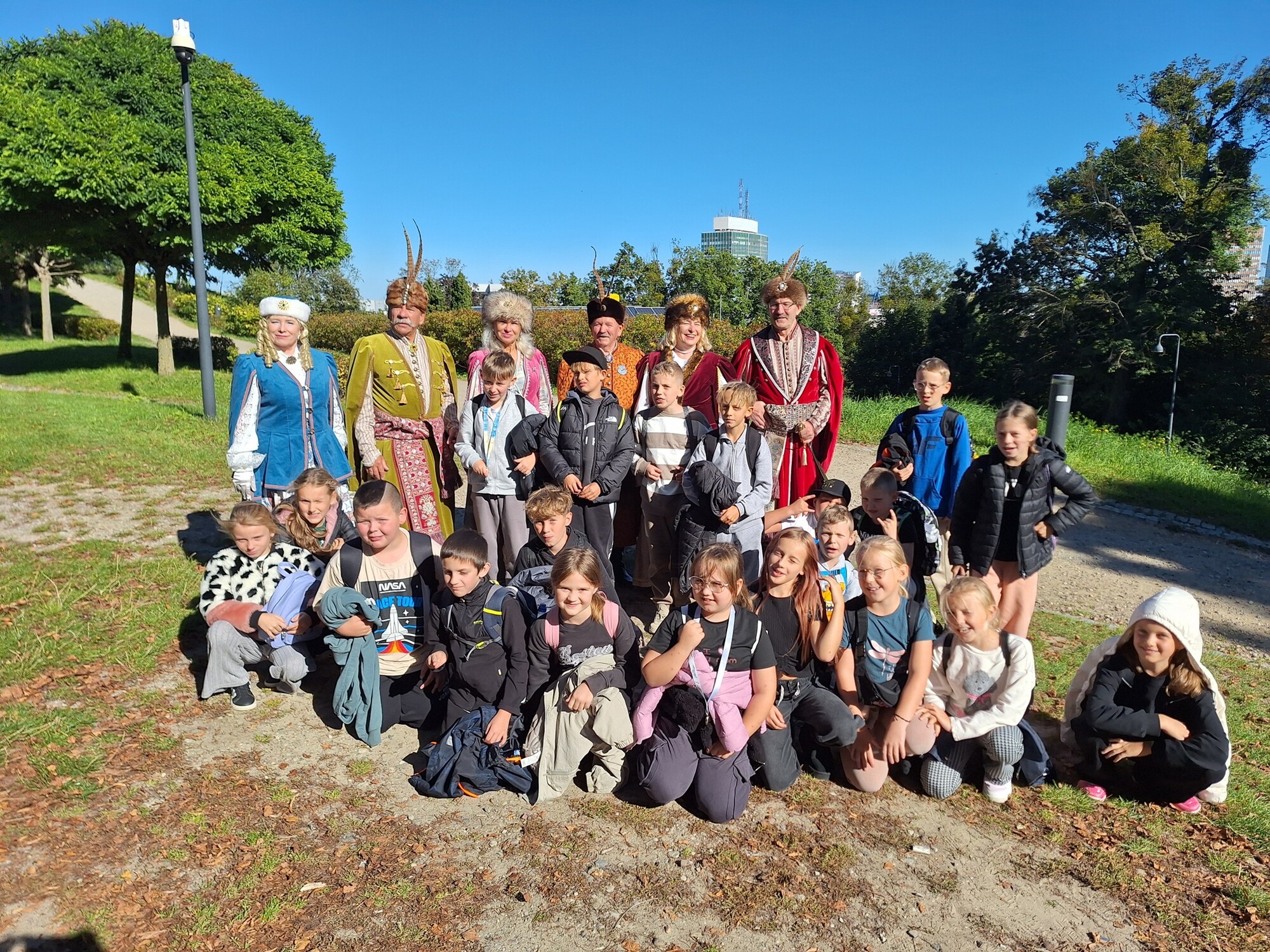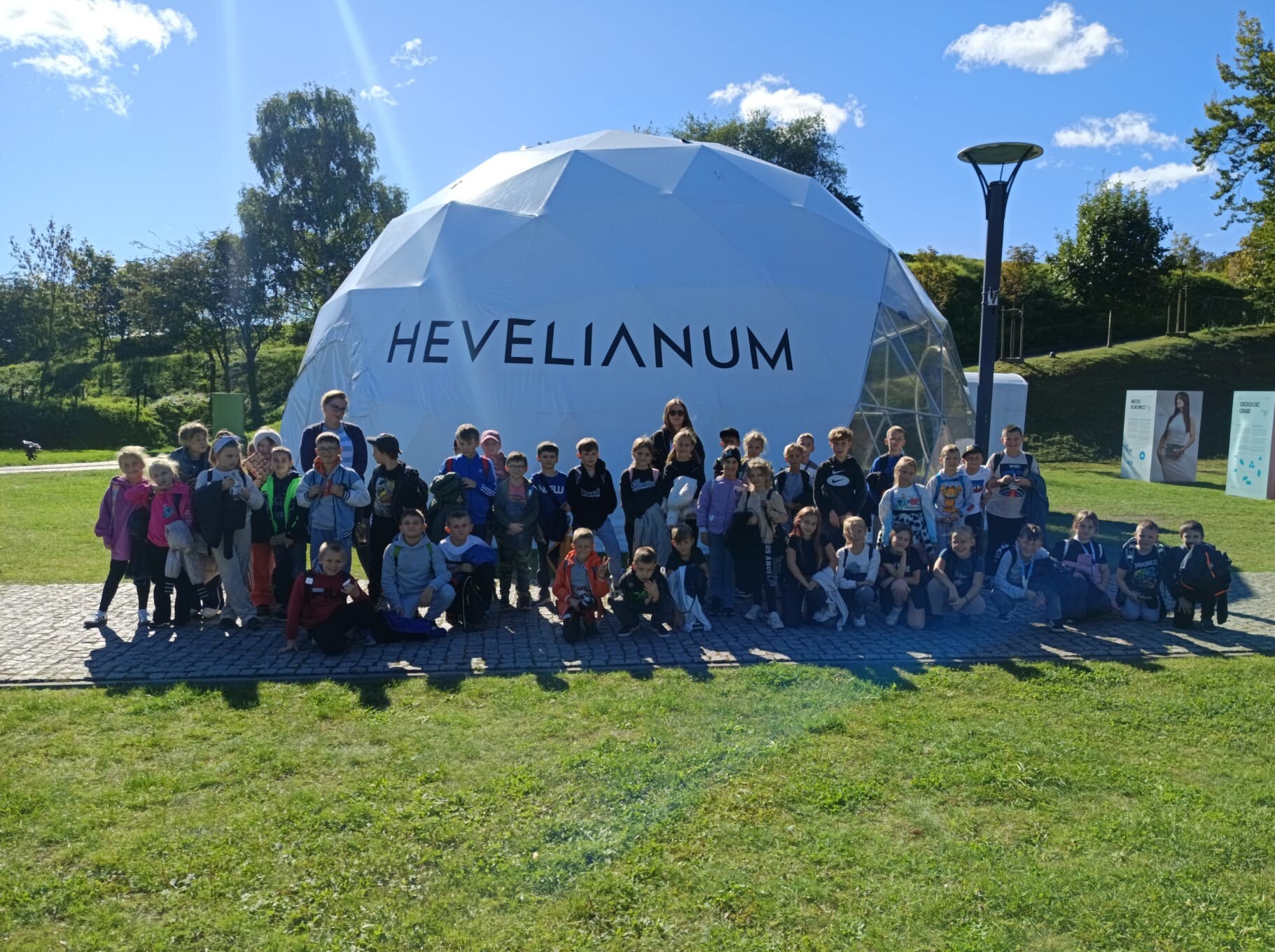 Pierwszym punktem wycieczki było Hevelianum - centrum nauki mieszczące się w zabytkowych budynkach dawnego fortu na Górze Gradowej. Dzieci brały tam udział w warsztatach „Mali chemicy w kuchni” oraz obejrzały interaktywną wystawę „Dookoła świata”. Po zakończeniu zwiedzania uczniowie spotkali również grupę rekonstrukcyjną szlachty polskiej, z którą zrobili pamiątkowe zdjęcia.