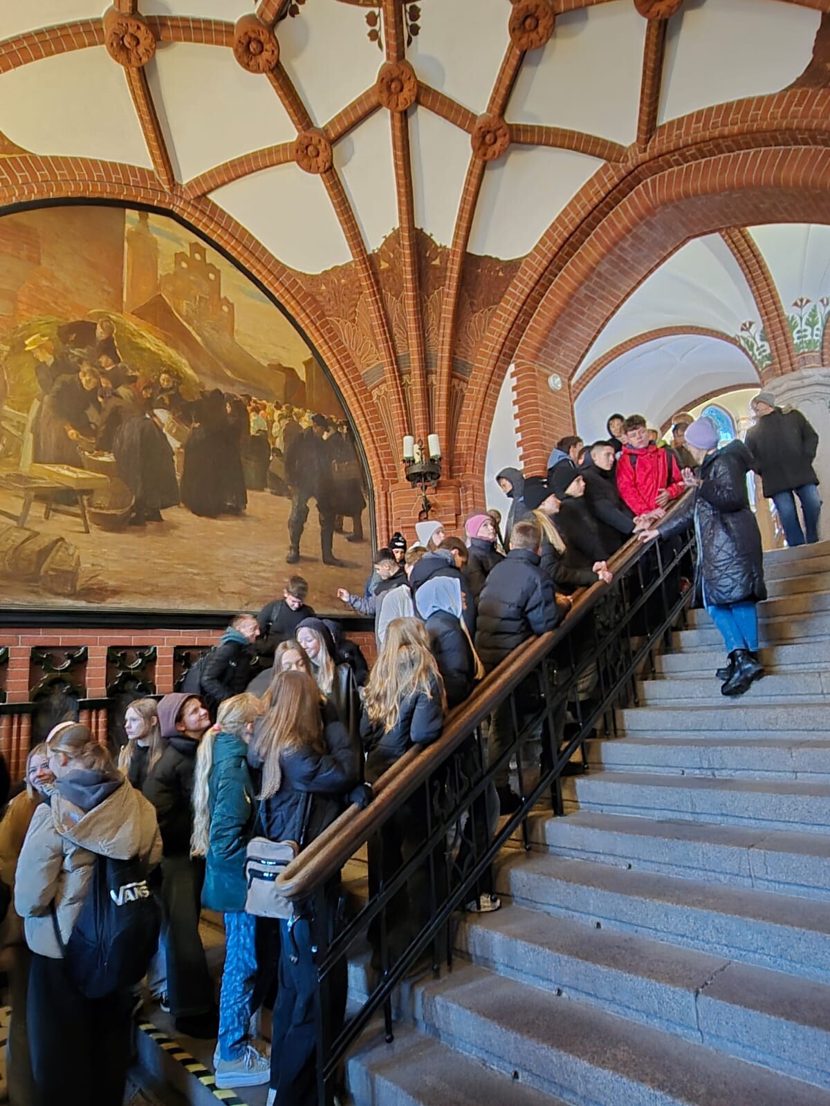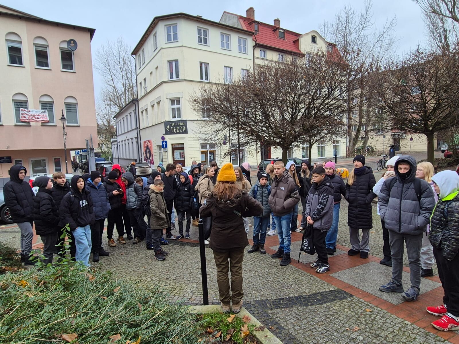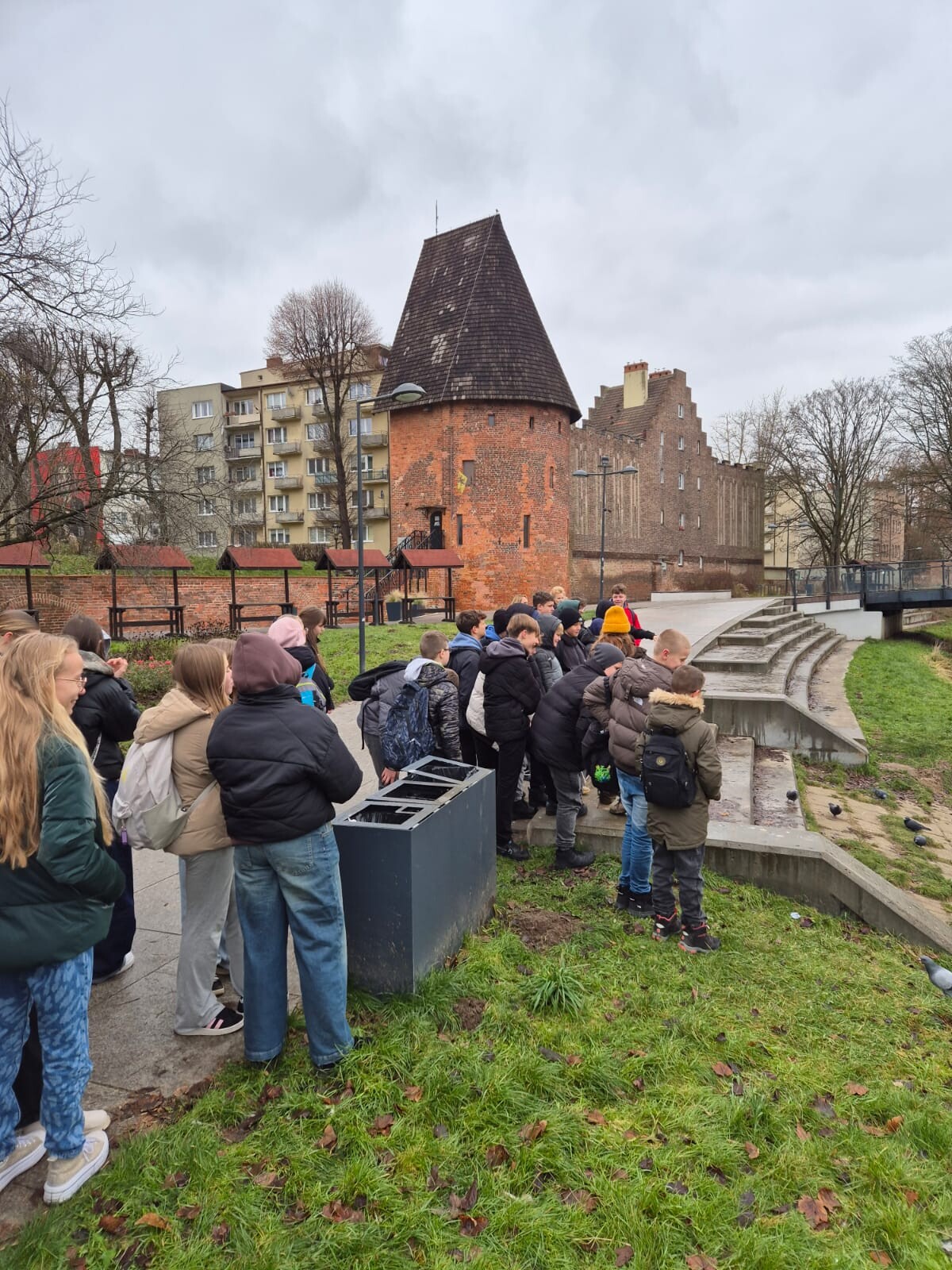 Po spektaklu siódmoklasiści wybrali się na spacer po zabytkowej części miasta. Podziwiali miejskie murale, zwiedzili ratusz i weszli na jego wieżę widokową, skąd rozciąga się panorama całego Słupska. Ostatnim etapem wycieczki był spacer wzdłuż słupskich bulwarów, które stanowią jedno z najpiękniejszych miejsc rekreacyjnych w mieście.