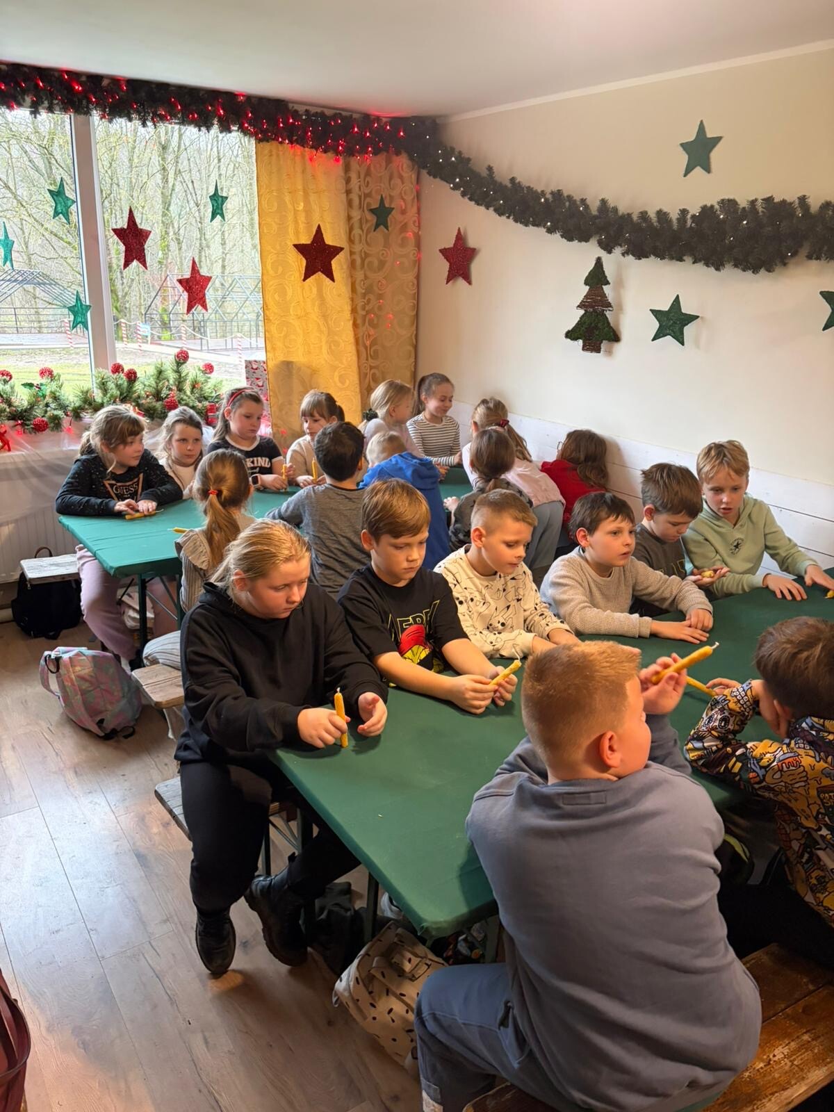 Dnia 11 grudnia uczniowie klas 2a i 3a wybrali się na magiczną wycieczkę do Przystanku Świętego Mikołaja. Podczas pobytu dzieci zwiedzały bajkowe, świąteczne zakątki pełne wyjątkowej atmosfery. Wysłuchały pięknych opowieści przy ognisku, a następnie własnoręcznie wykonały bombki oraz świeczki, rozwijając swoją kreatywność i świąteczne talenty.