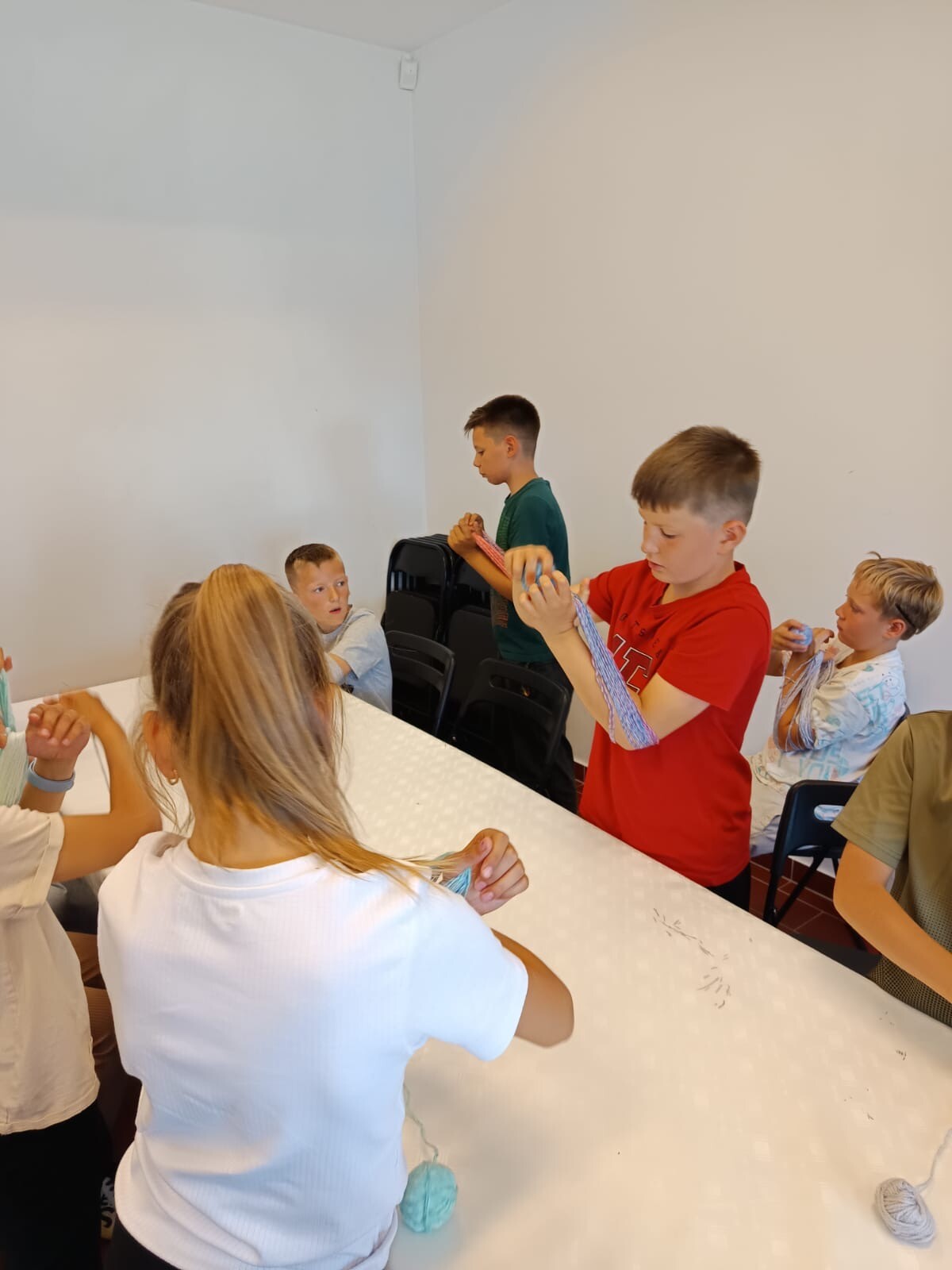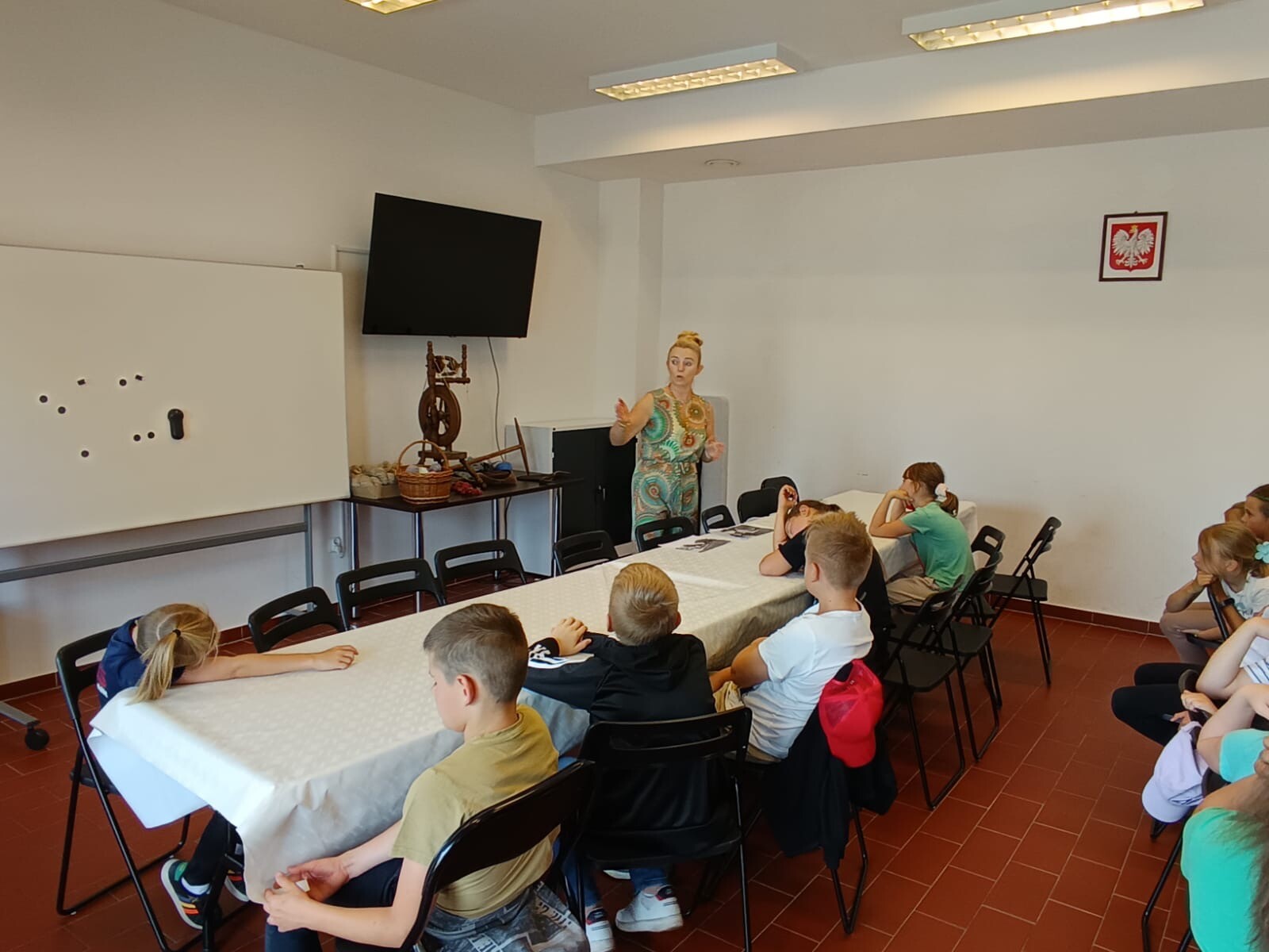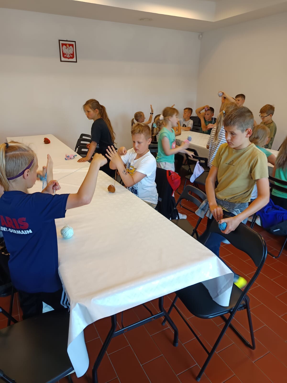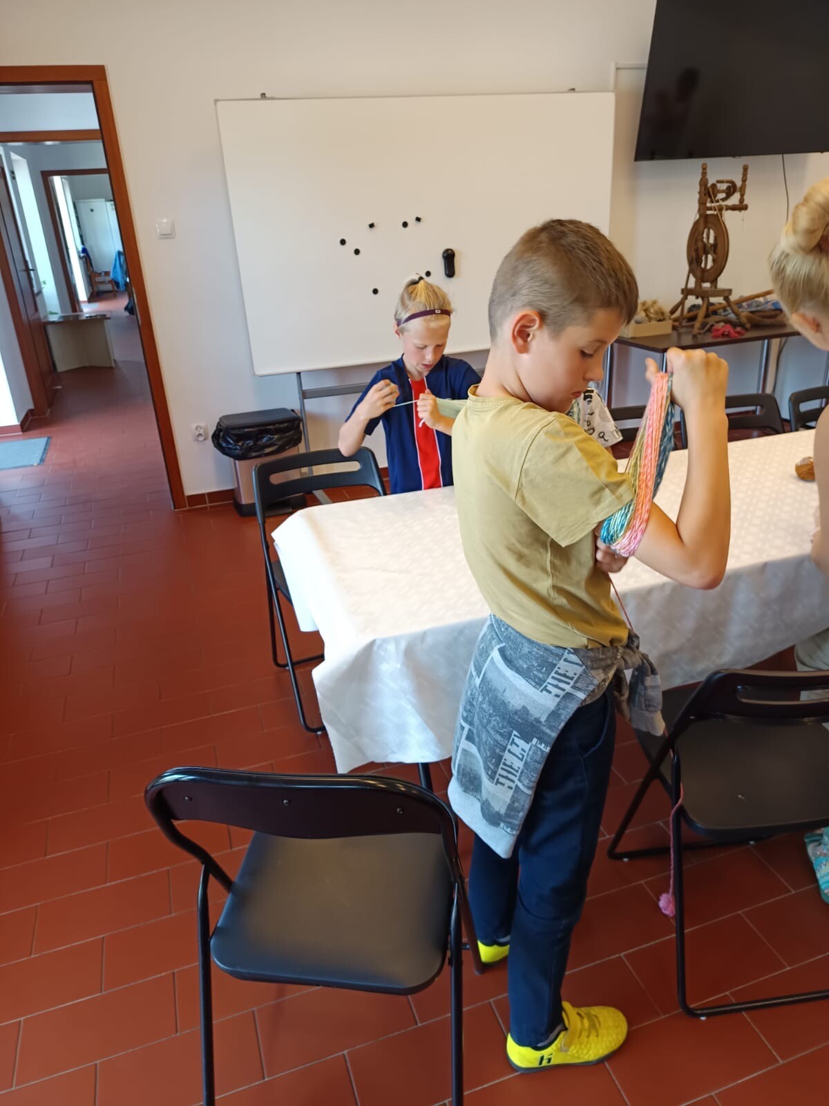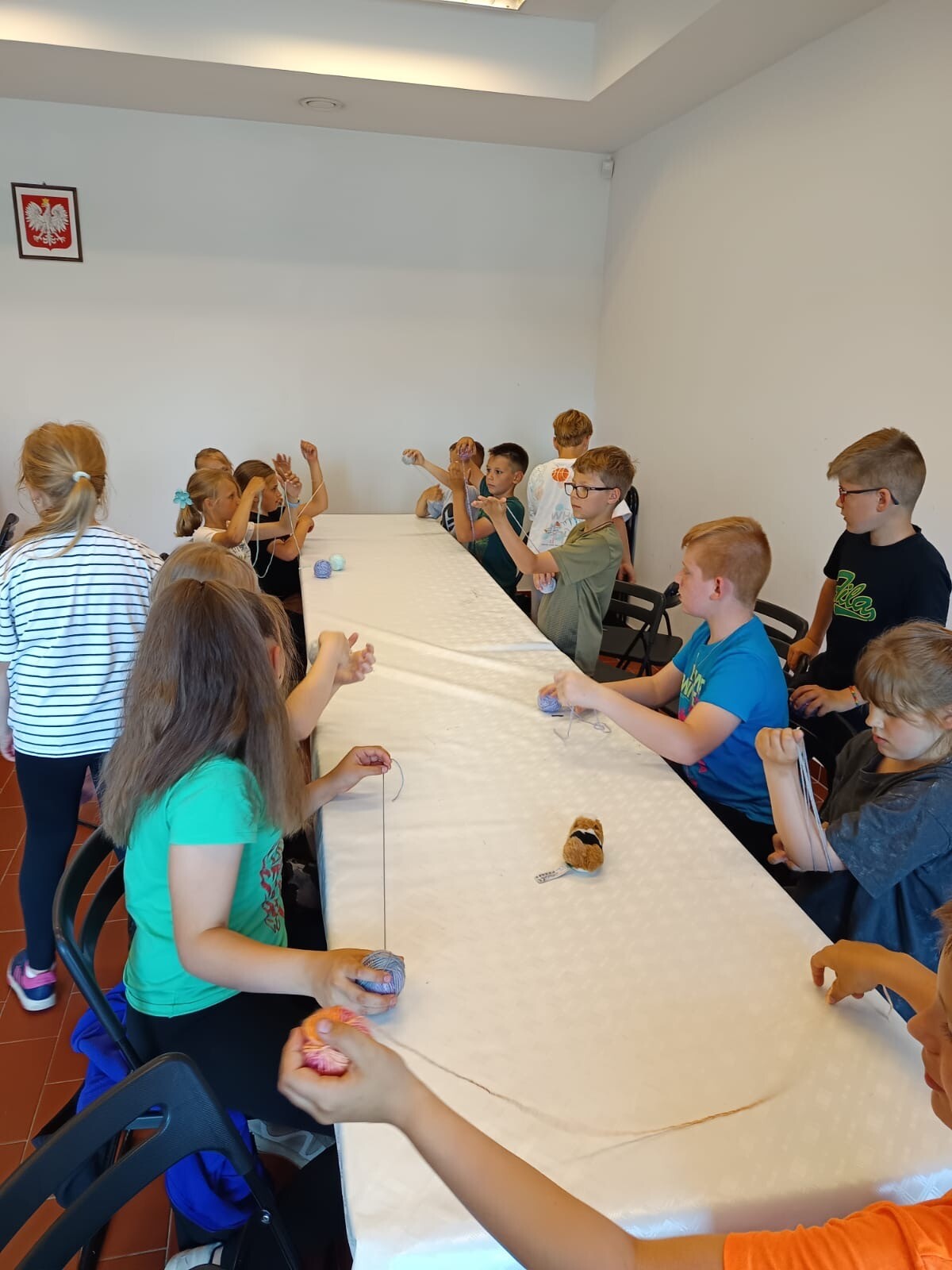 Następnie uczniowie udali się pieszo do Zagrody Styp-Rekowskich, gdzie czekały na nich ciepłe, chrupiące gofry wypiekane na tradycyjnym piecu kaflowym. Dzieci wzięły także udział w interesujących warsztatach edukacyjnych, podczas których poznały historię hodowli owiec na Kaszubach oraz własnoręcznie wykonały lalki z kolorowych gałganków i wełny.
