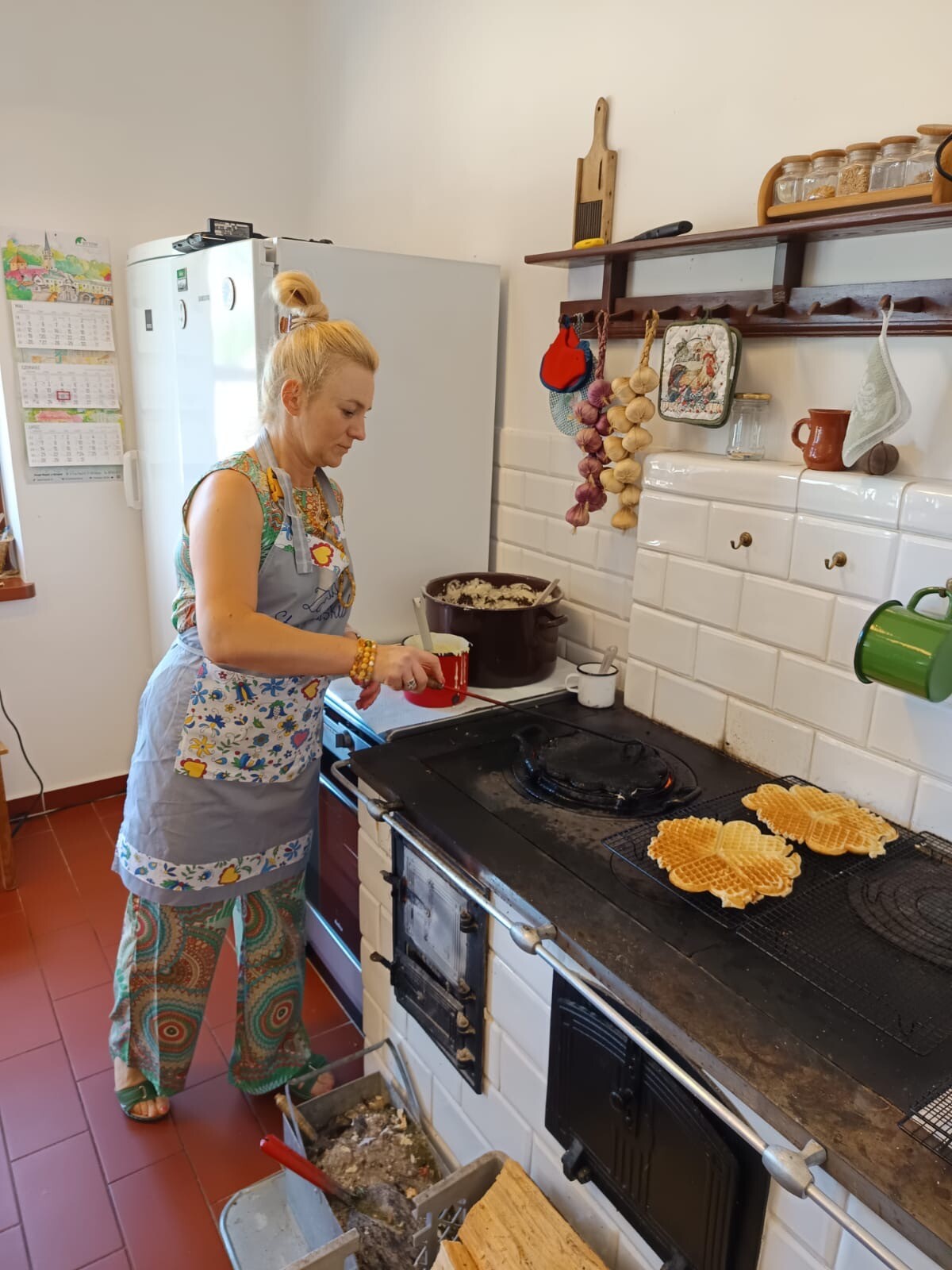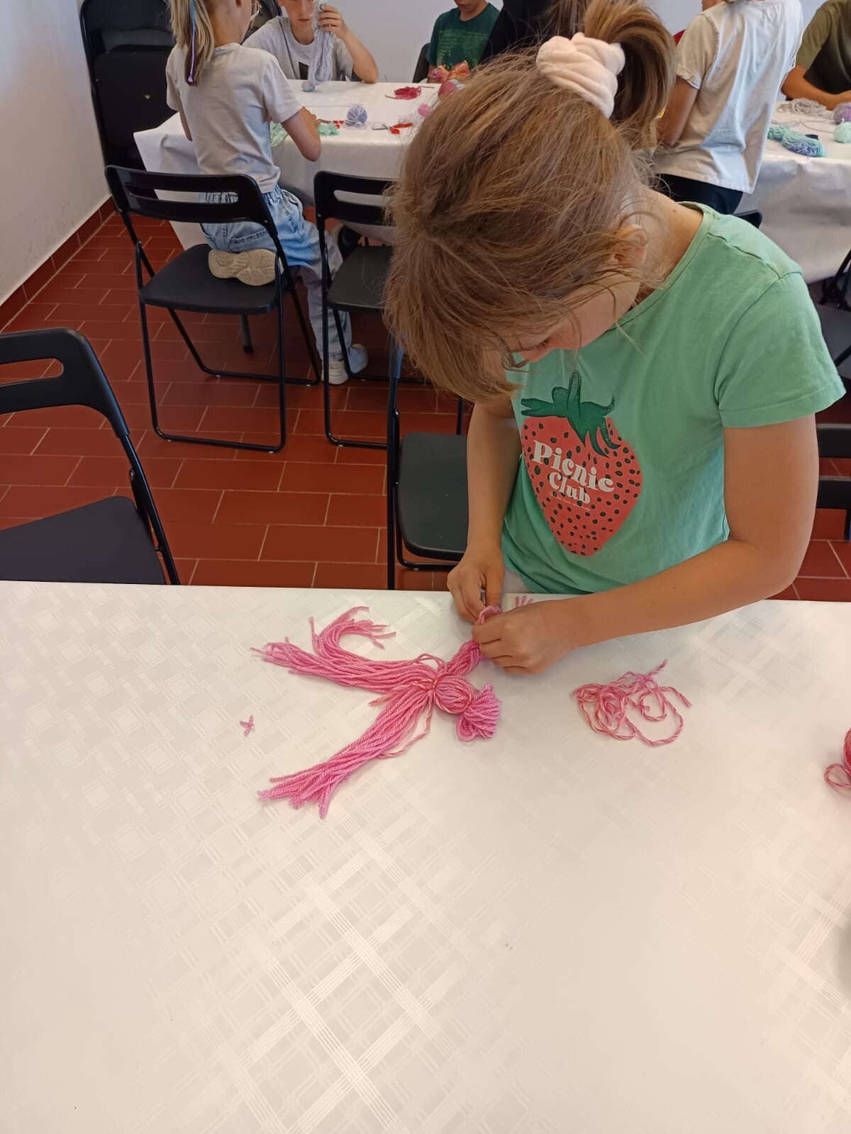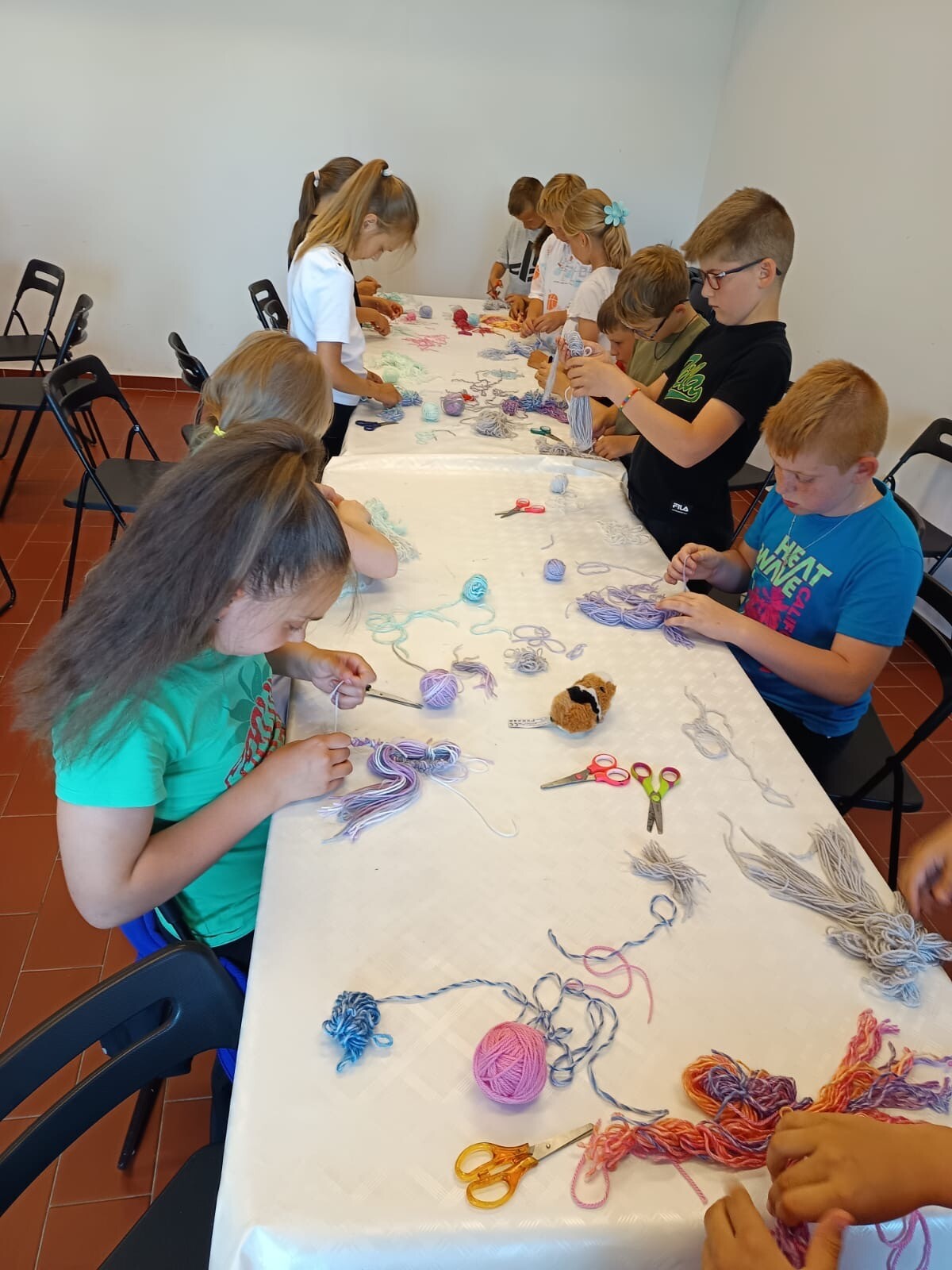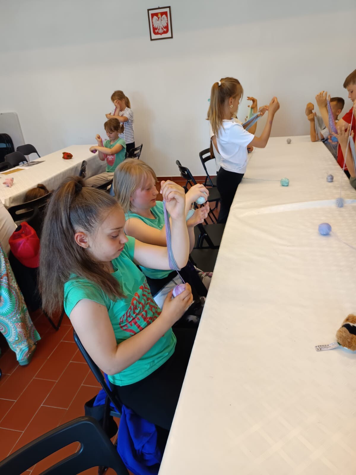 Następnie uczniowie udali się pieszo do Zagrody Styp-Rekowskich, gdzie czekały na nich ciepłe, chrupiące gofry wypiekane na tradycyjnym piecu kaflowym. Dzieci wzięły także udział w interesujących warsztatach edukacyjnych, podczas których poznały historię hodowli owiec na Kaszubach oraz własnoręcznie wykonały lalki z kolorowych gałganków i wełny.