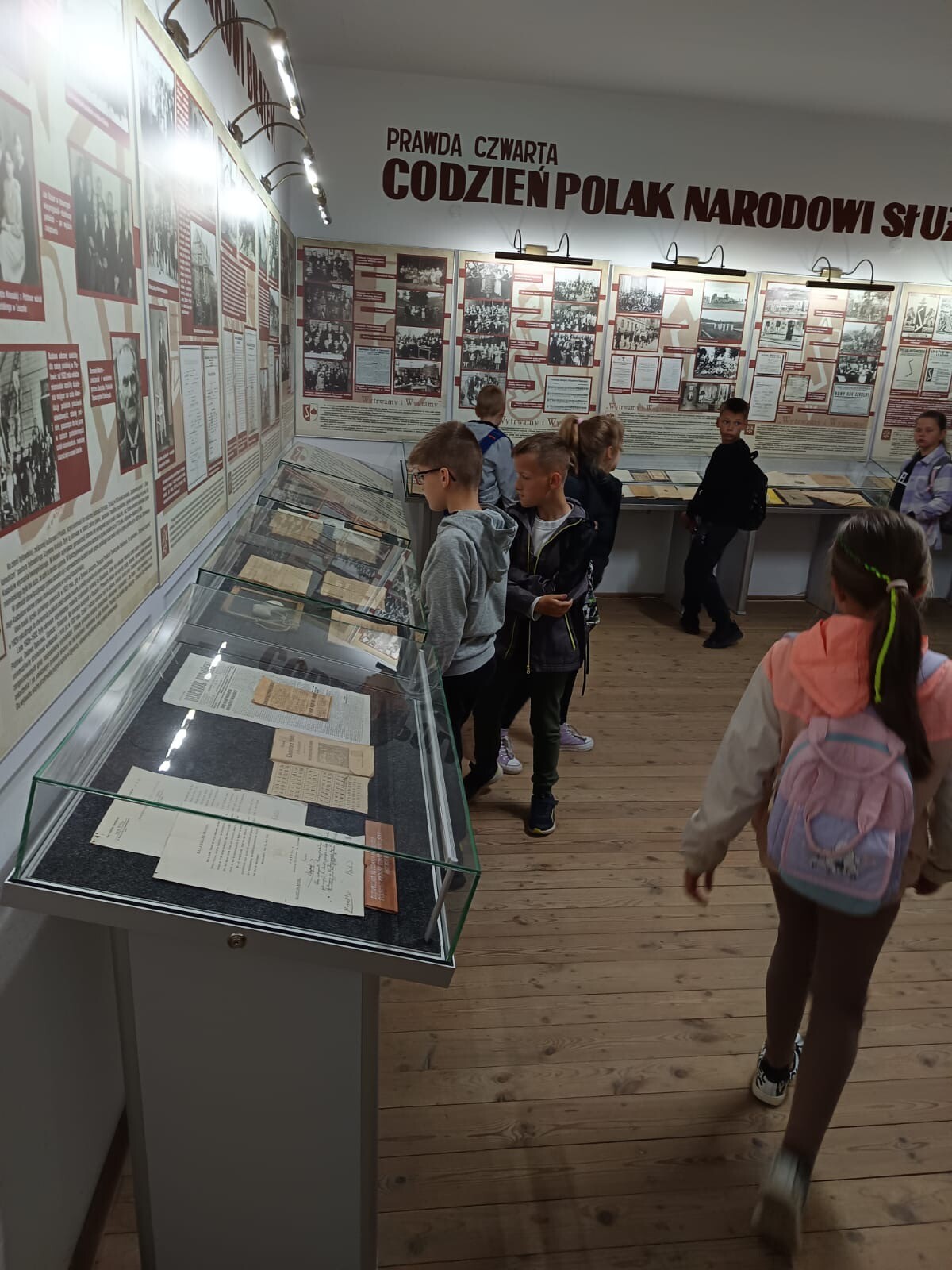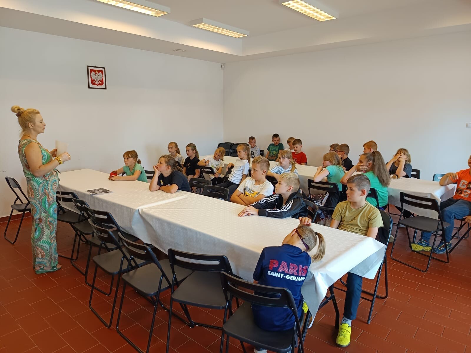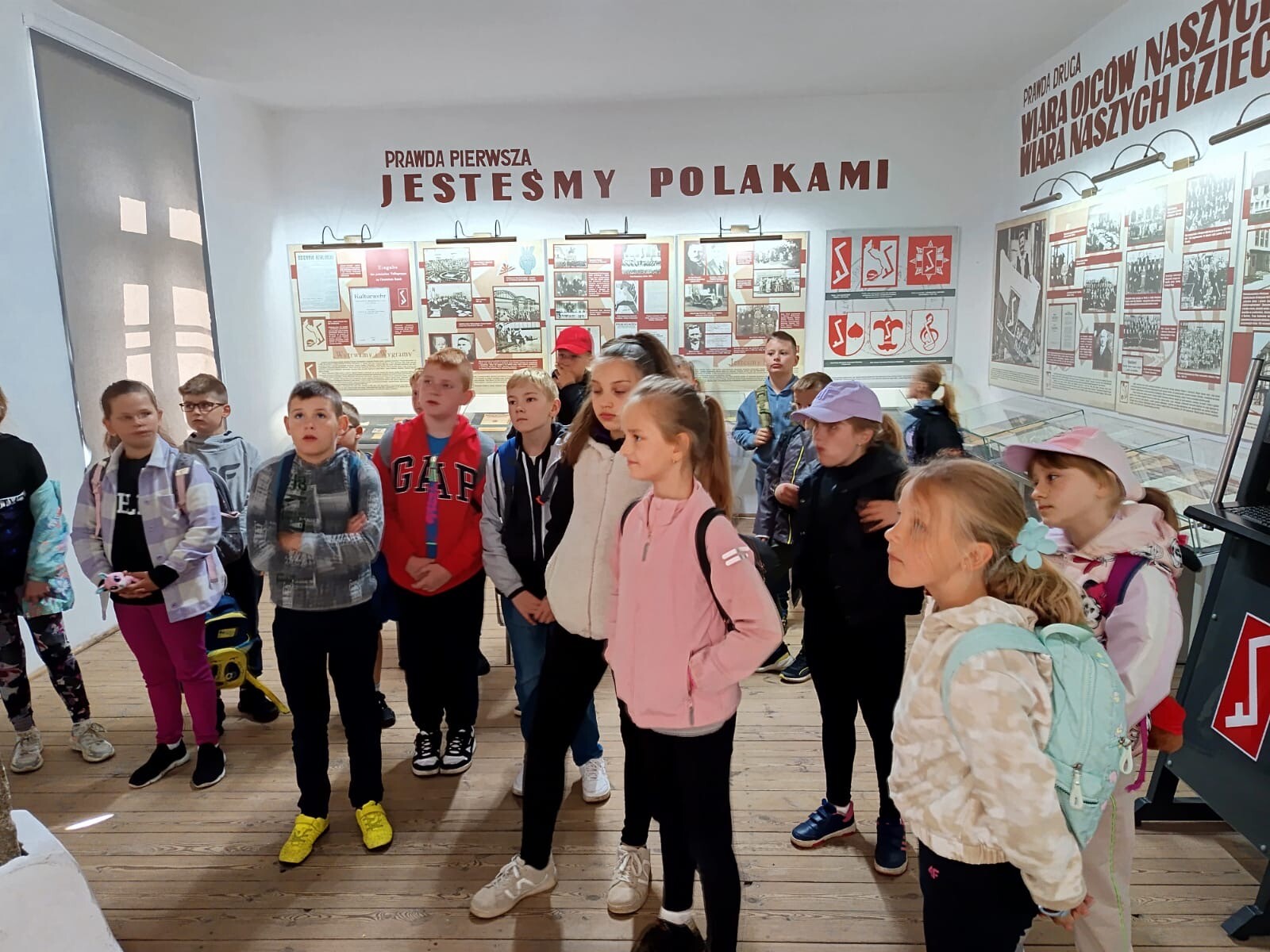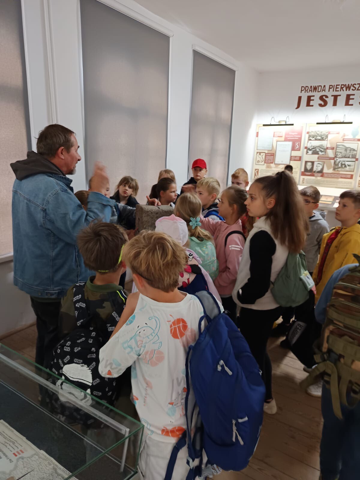 Pierwszym punktem wyprawy była pierwsza szkoła polska w Płotowie, gdzie dzieci uczestniczyły w niezwykłej „małej lekcji historii”. Zajęcia poprowadził Pan Jaromir Szroeder – pracownik Muzeum Zachodniokaszubskiego w Bytowie, który w ciekawy sposób przybliżył uczniom przeszłość naszego regionu.