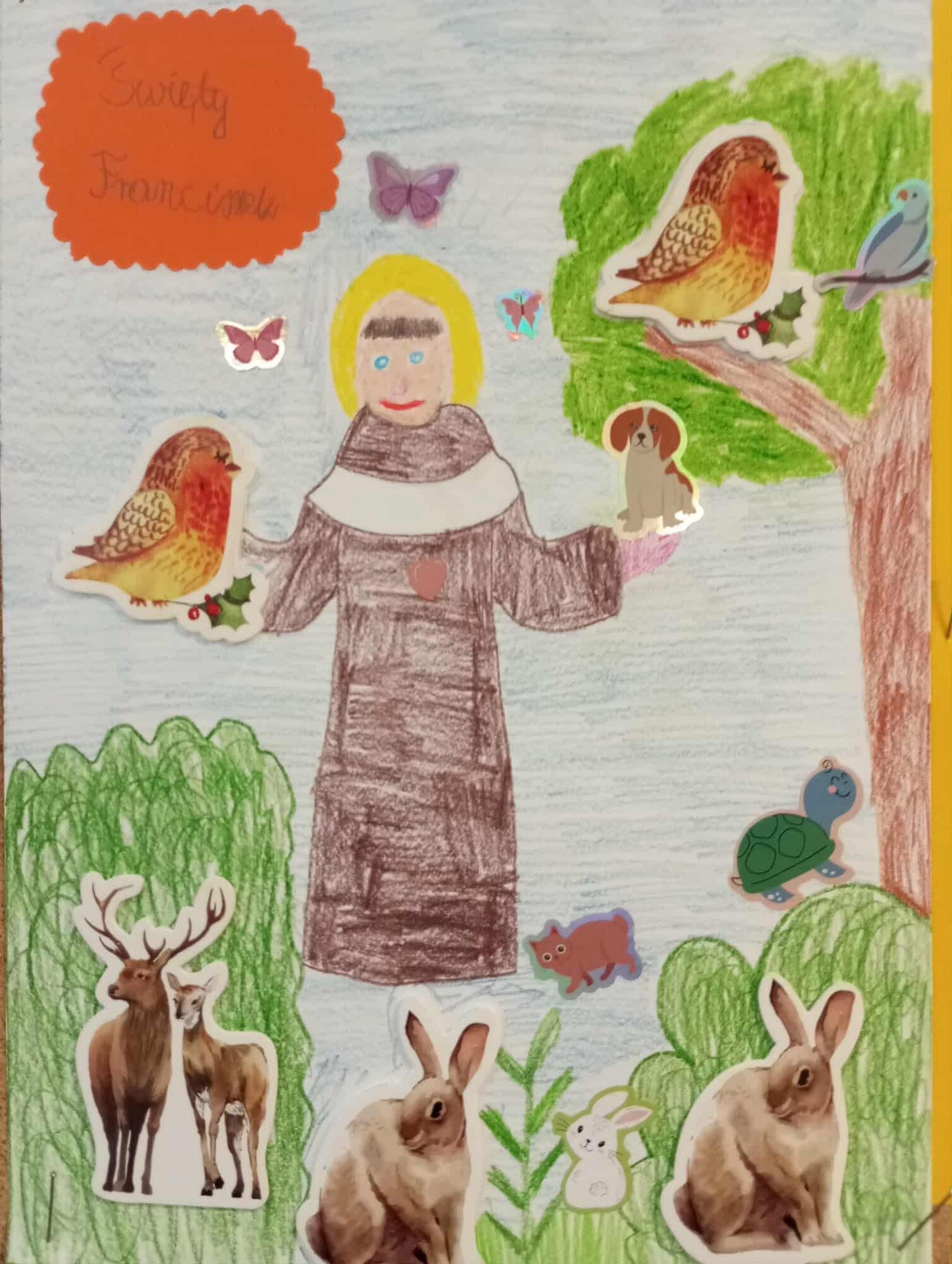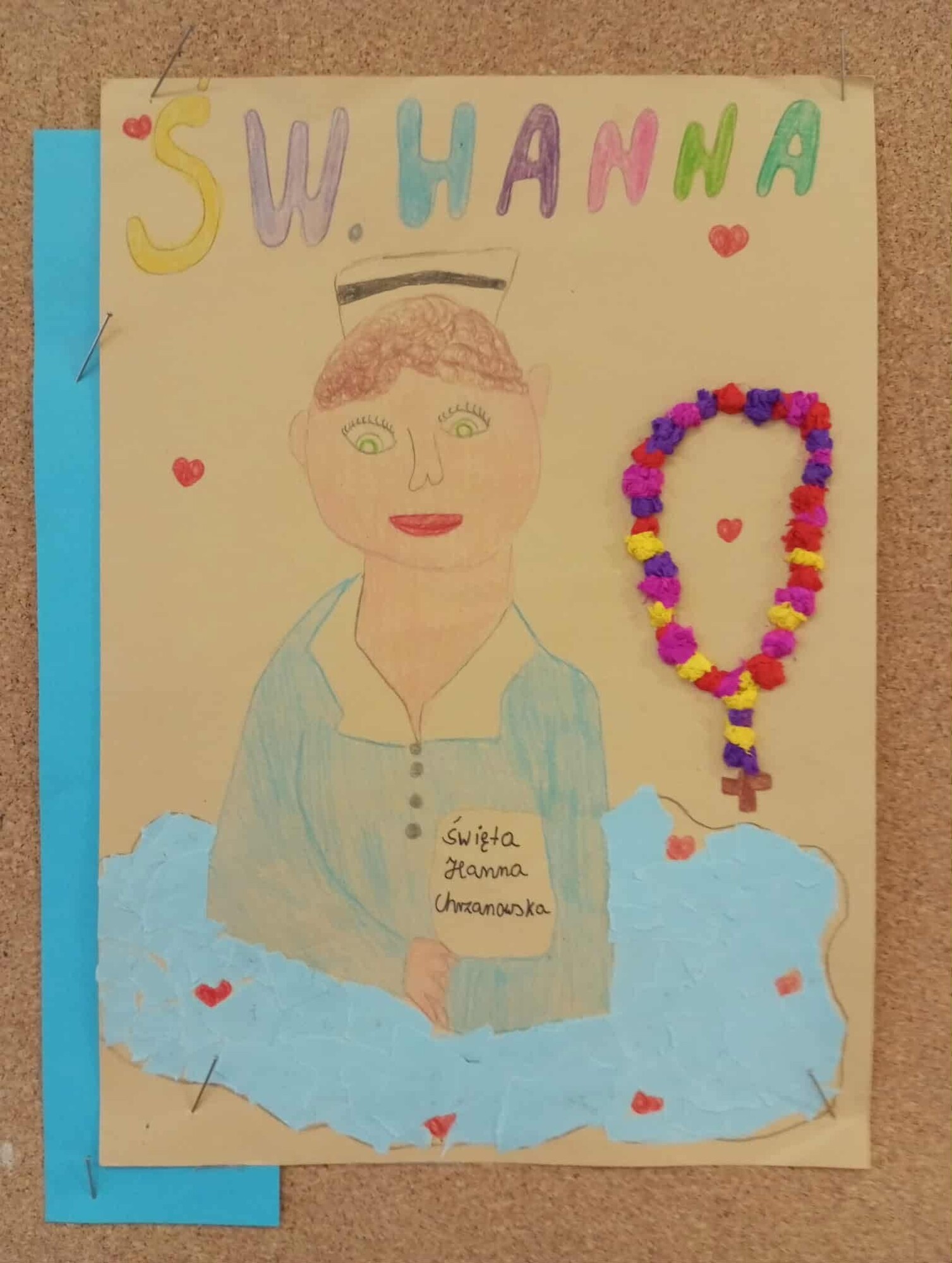 W naszej szkole odbył się konkurs plastyczny „Mój Święty Patron”, skierowany do uczniów klas I–IV. Zadaniem uczestników było wykonanie pracy plastycznej przedstawiającej swojego świętego patrona – dowolną techniką.