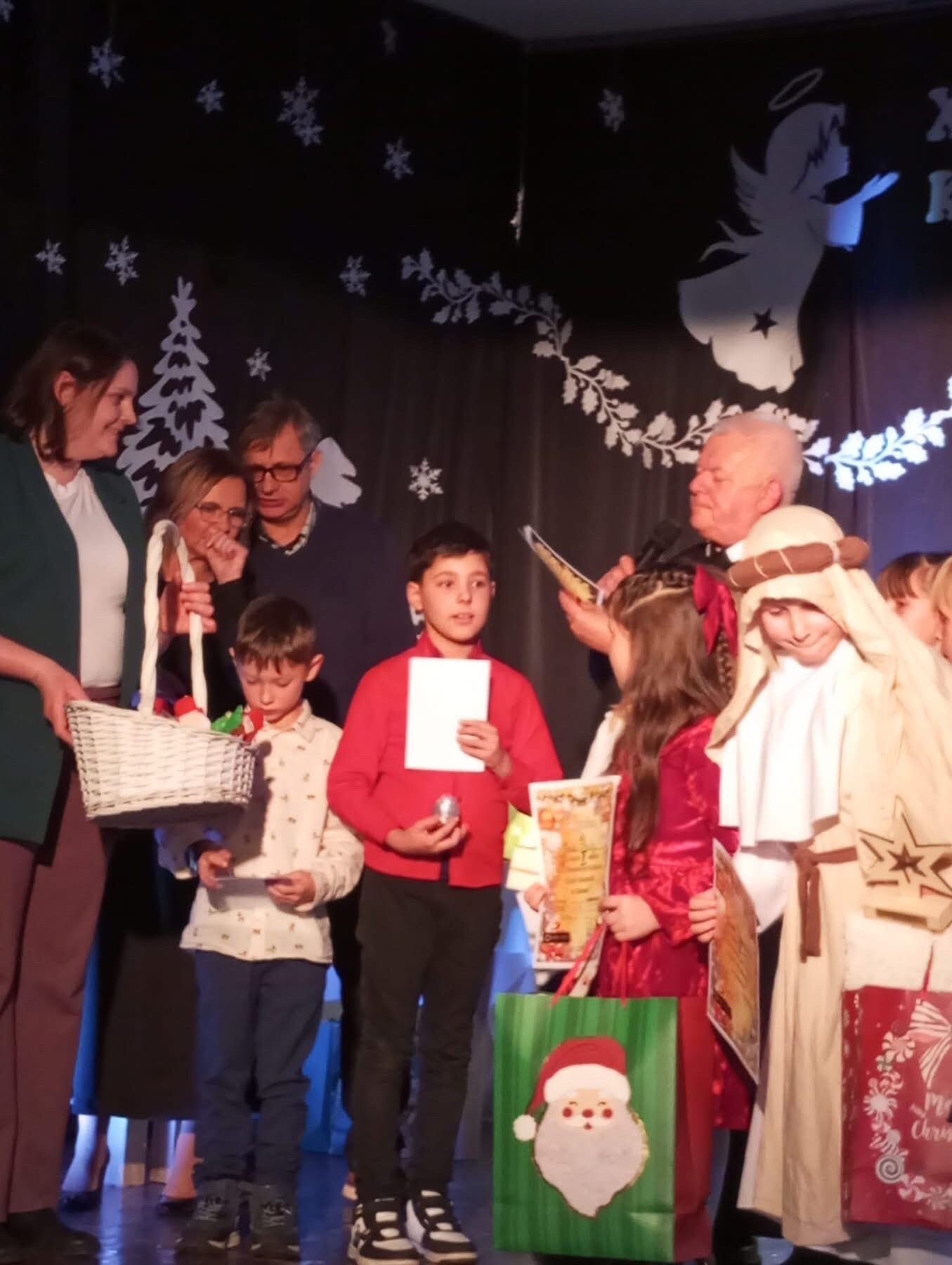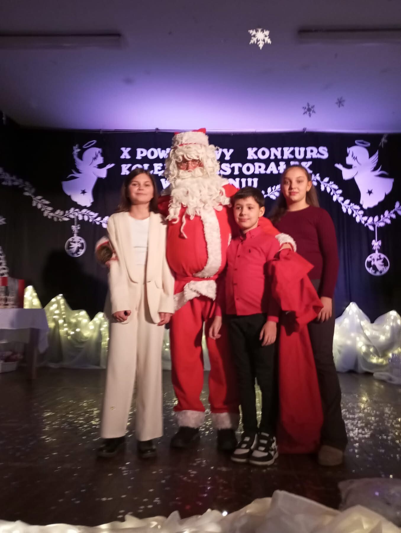 Każda szkoła mogła zgłosić tylko jednego uczestnika w danej kategorii, tym bardziej cieszymy się, że nasi reprezentanci wystąpili w pełnym składzie. W przerwie konkursu uczestników odwiedził święty Mikołaj, wywołując wiele radości i uśmiechów.