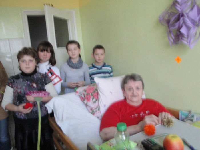 21.12.2011 roku uczniowie naszej szkoły, pod opieką Ireny Barbary Gospodarek, odwiedzili pacjentów Zakładu Opiekuńczo - Leczniczego w Bytowie. Dzieci złożyły chorym świąteczne życzenia i podzieliły się opłatkiem. W trakcie spotkania wspólnie śpiewano kolędy. Spotkanie było dla wszystkich bardzo wzruszające. Dzieci długo przygotowywały się do wizyty. Własnoręcznie wykonały stroiki i kartki świąteczne. Pacjenci obdarowali dzieci bibułkowymi ozdobami choinkowymi.