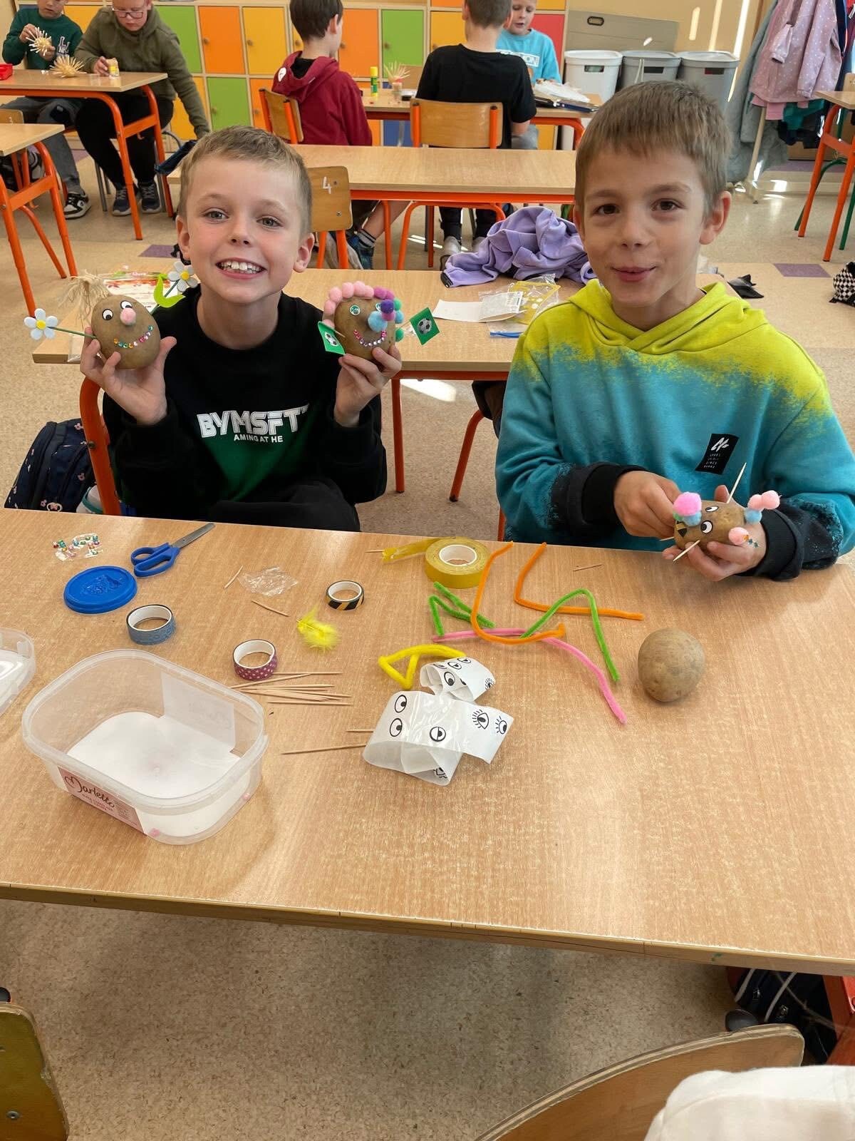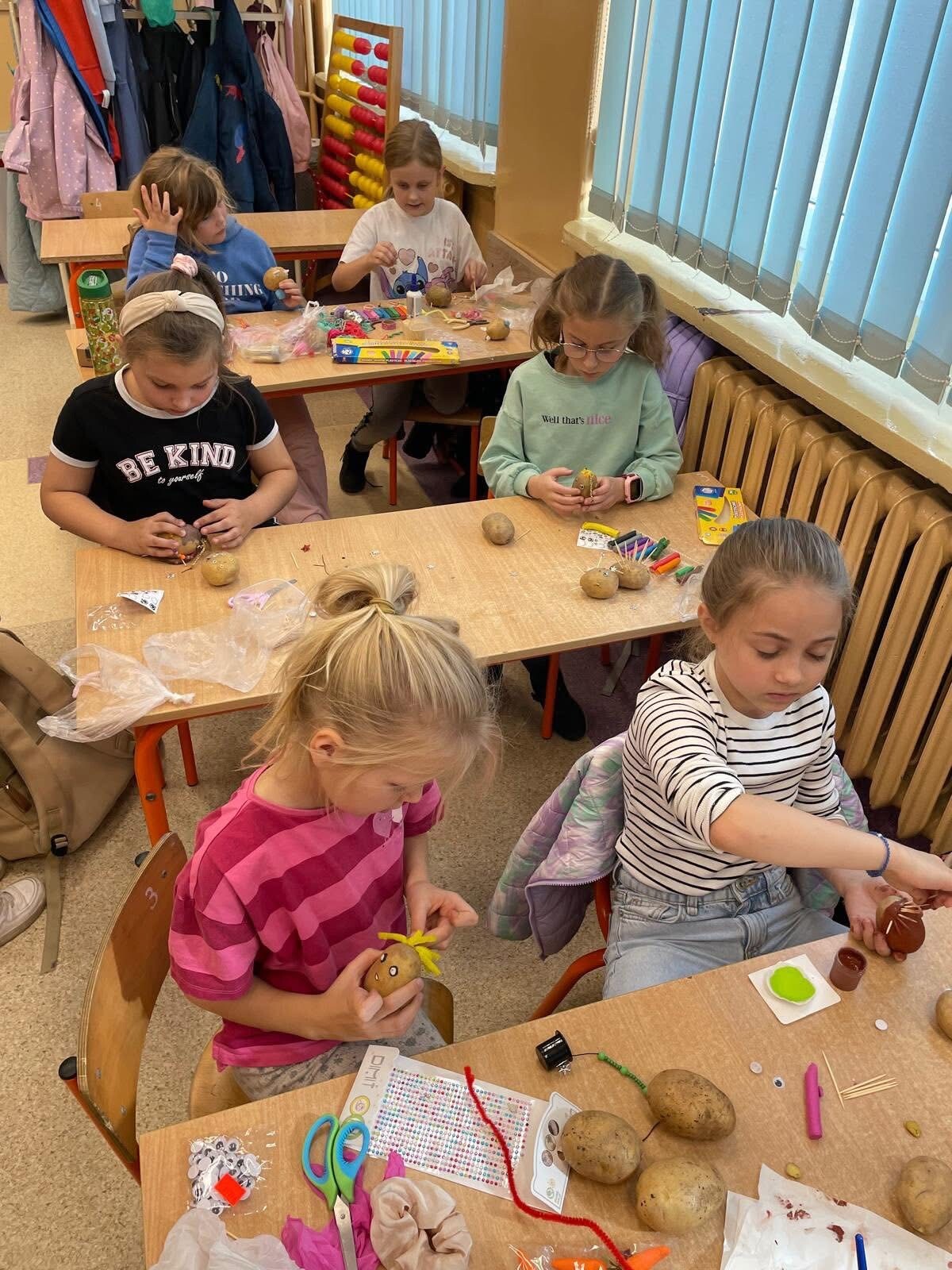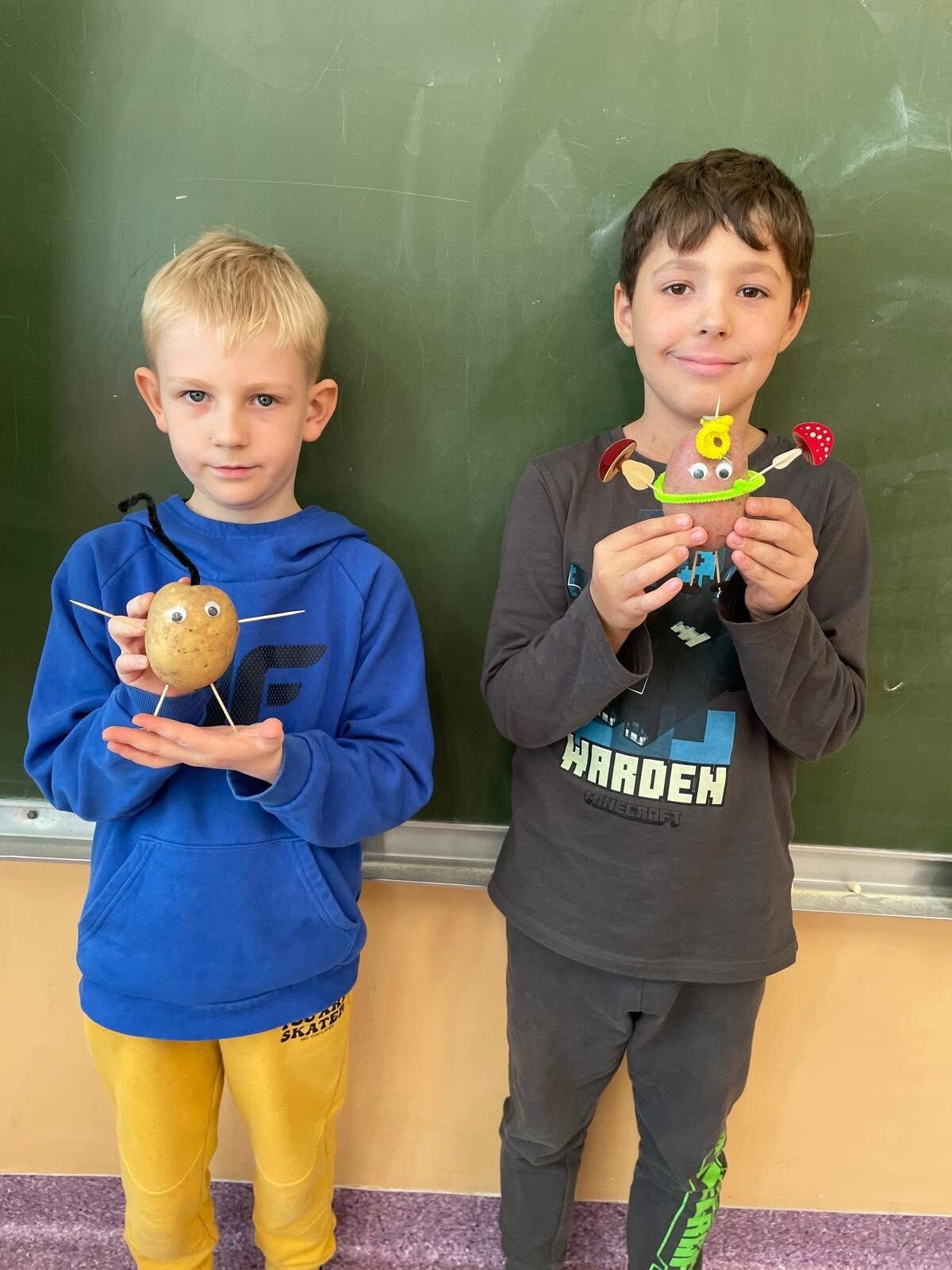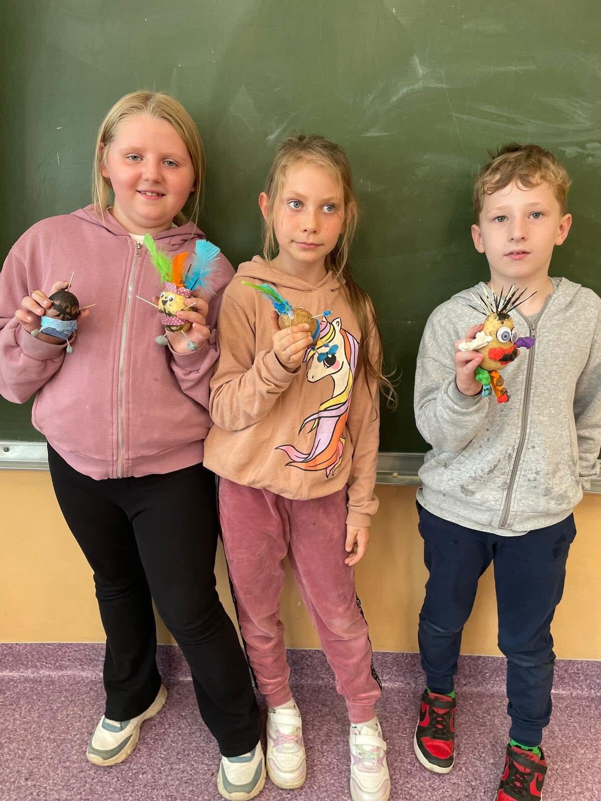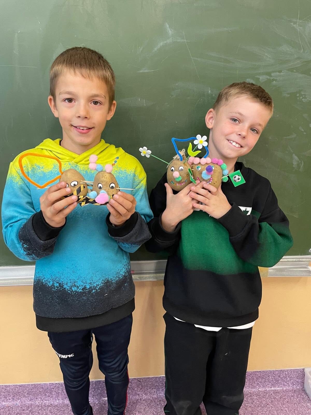 Uczniowie klasy 2a wykazali się ogromną fantazją i pomysłowością podczas zajęć plastycznych! Z ziemniaków powstały prawdziwe małe dzieła sztuki – kolorowe figurki, zwierzątka i postacie z wyobraźni. Dzieci pracowały z zaangażowaniem i uśmiechem, a efekty ich pracy zachwyciły wszystkich!